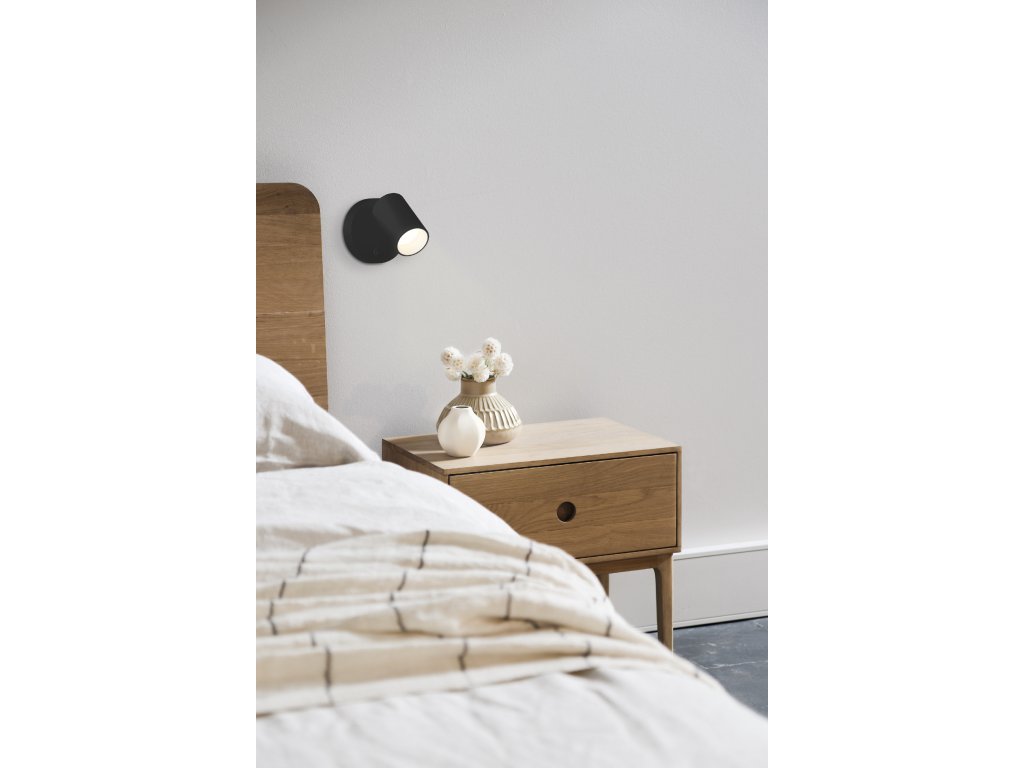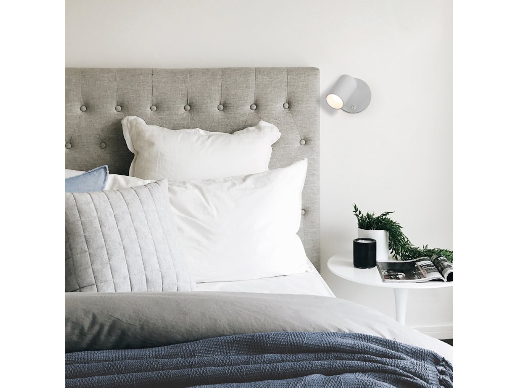 Nástenné LED svietidlo GINA typu bodového svetla, ktoré umožňuje jeho orientáciu v požadovanom smere o 350 ° do strán a 90 ° hore a dole.