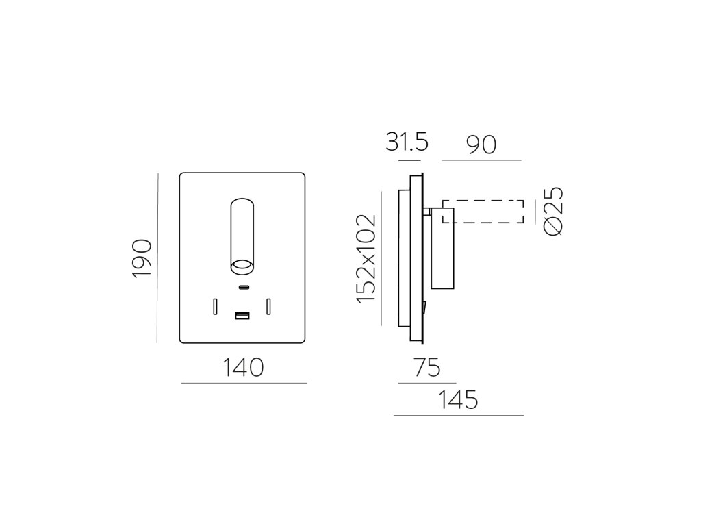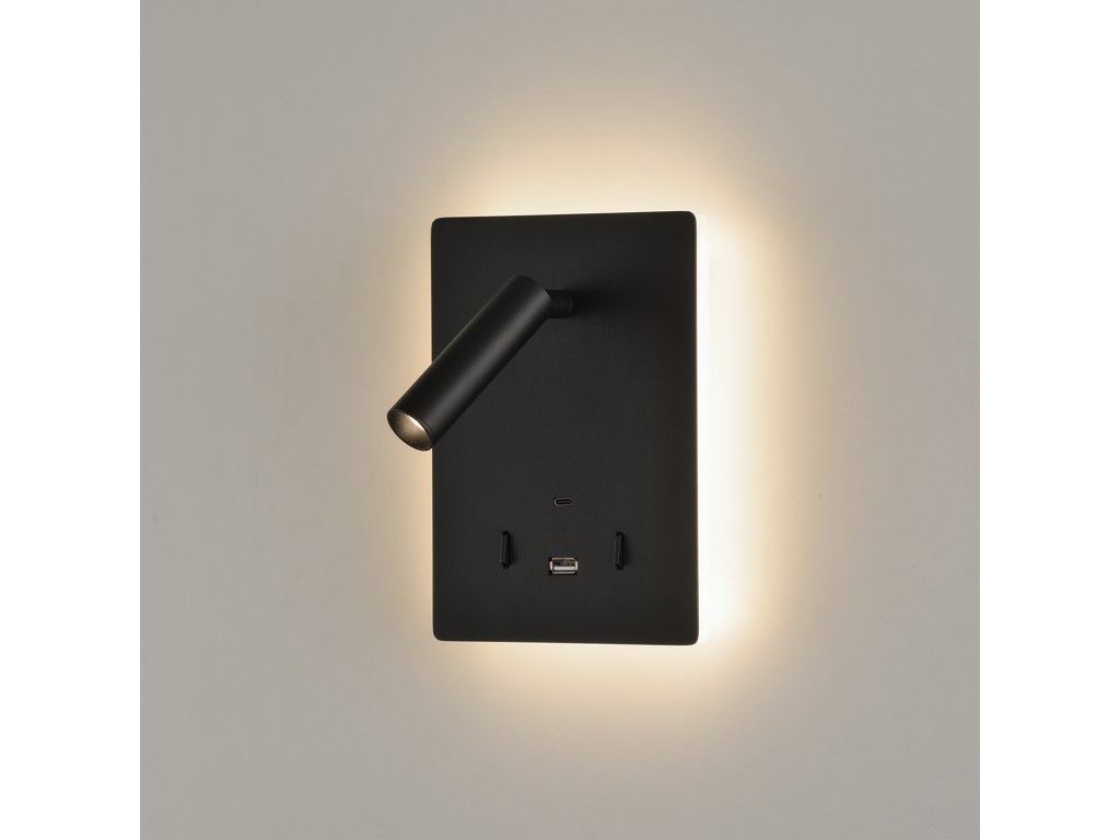 Nástenné LED svietidlo MANAT, v. 19 cm, 12W + 3W, CRI90, 2x vstup USB/USBC