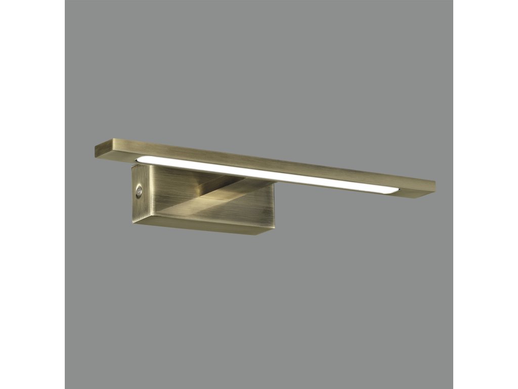 Štýlové nástenné LED svietidlo zo série&Menorca, vyrobené z kovovej základne vo farbe starožitnej mosadze, chrómu, bielej alebo čiernej a obdĺžnikového ramena s bielym opálovým plastovým difúzorom, svietiacou dole a vysokým stupňom krytia: IP44.