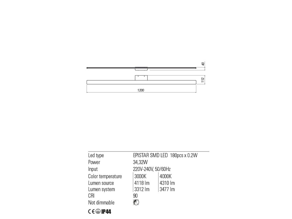 Nástenné LED svetlo Barrio svieti LED diódami. Farba svetla je 4000K. Svetlo je 120cm široké a vyrába sa aj v dĺžke 60cm a 90cm. Toto svetlo je určené na montáž na stenu. Vďaka krytiu IP44 je možné ho použiť v kúpeľni na osvetlenie zrkadla. Kovová konštrukcia je lakovaná v matnej, čiernej a bielej farbe. Kryt LED diód je vyrobený z plastu v saténovom prevedení.