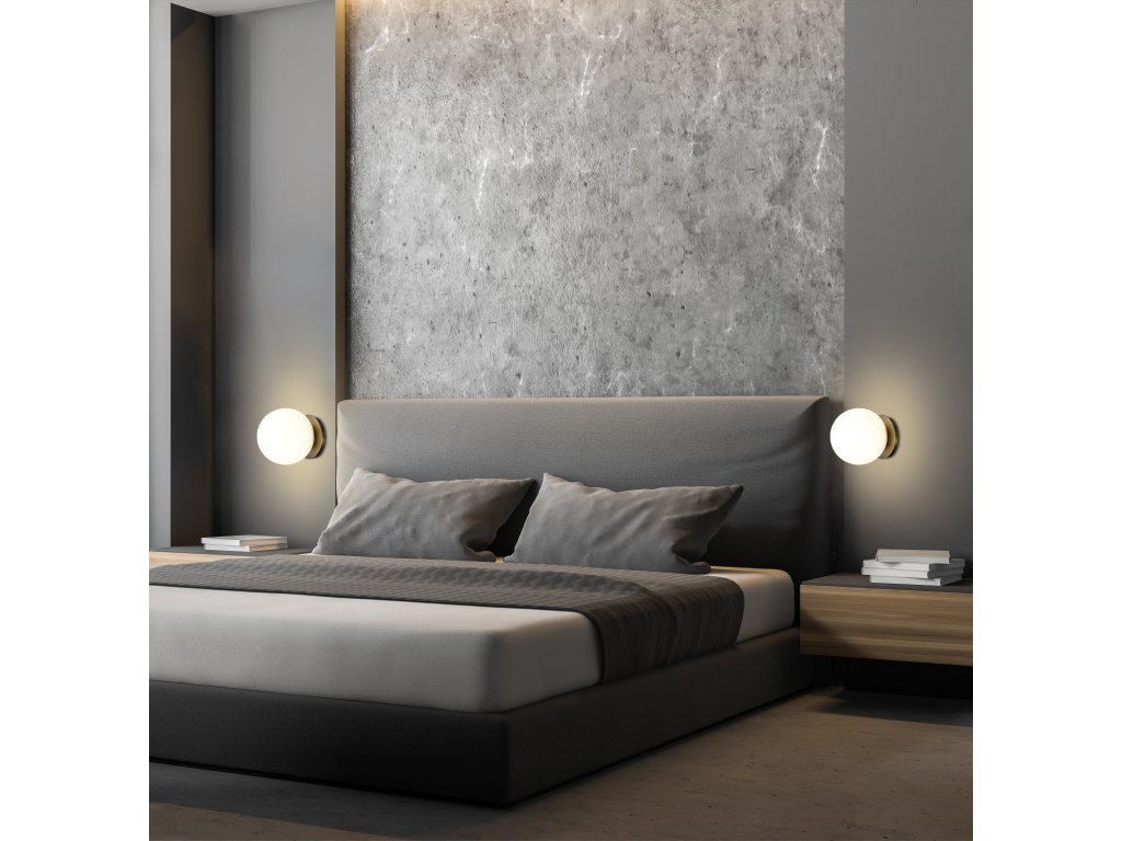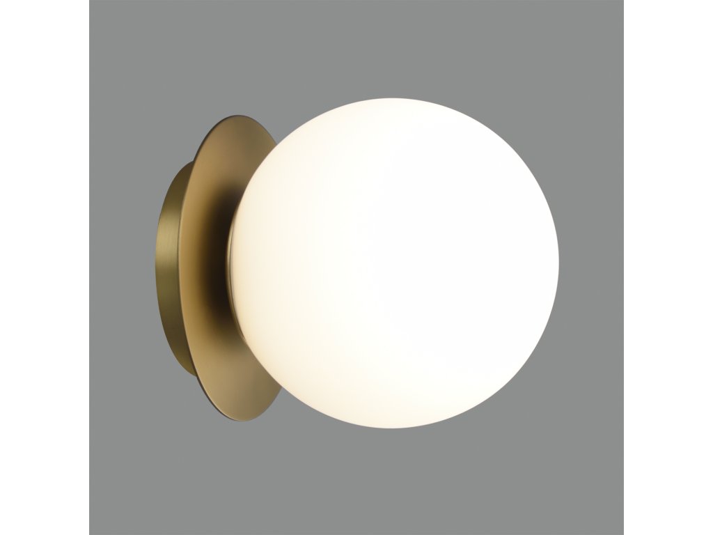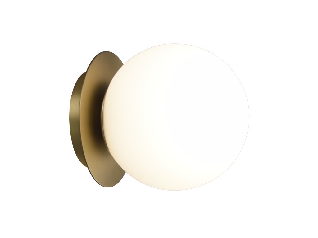 Elegantné nástenné svietidlo s moderným dizajnom zo série Parma, vyrobené z guľatej kovovej základne vo farbe antickej mosadze a guľového tienidla z opálového skla.