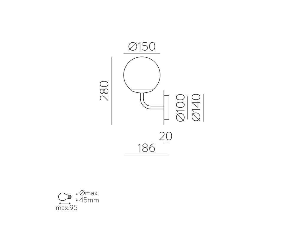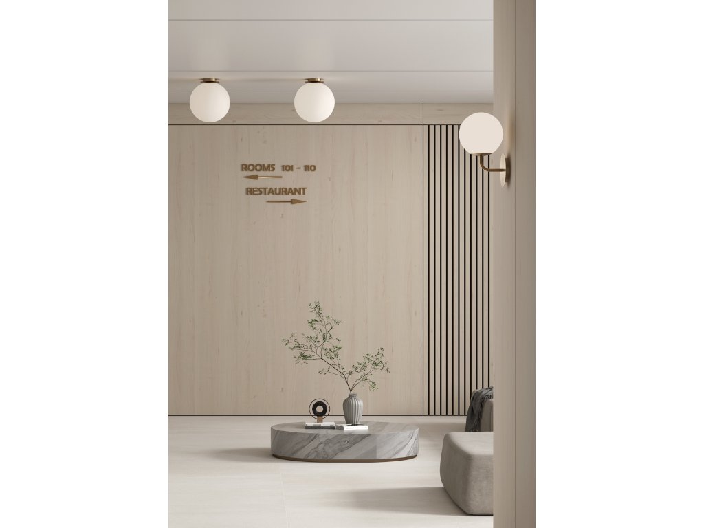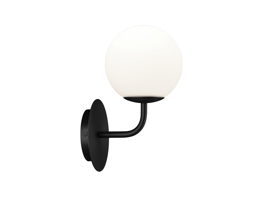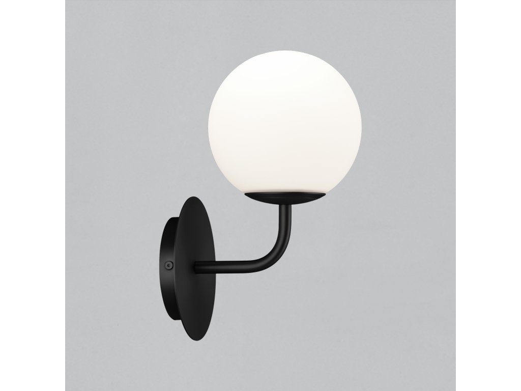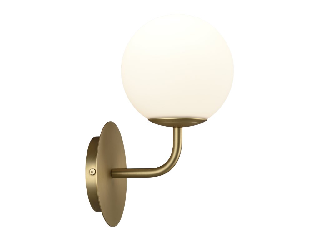 Elegantné nástenné svietidlo s moderným dizajnom zo série Parma, vyrobené z guľatej kovovej základne vo farbe antickej mosadze a guľového tienidla z opálového skla na stonke.