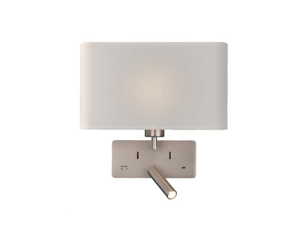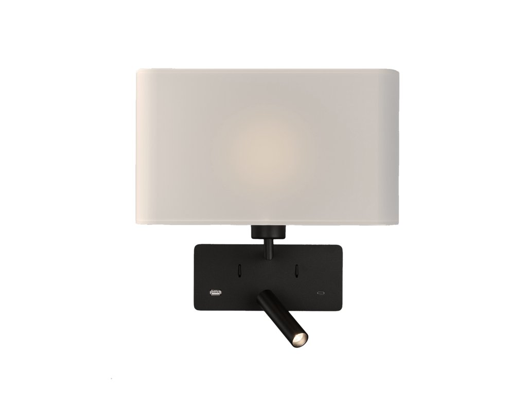 Nástenné LED svietidlo ROMEO, v. 32 cm, 1xE27 15W + 3W, 2x vstup USB/USBC