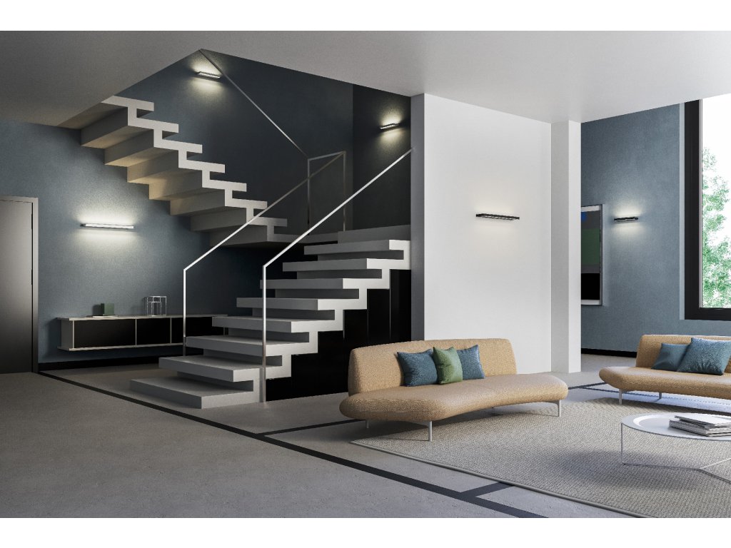 Nástenné interiérové svietidlo vybavené LED diódami SMD s priamym/nepriamym rozptylom svetla. Hliníkové telo elektrostaticky lakované pieskovo čiernou alebo bielou farbou, saténové akrylové difúzory.