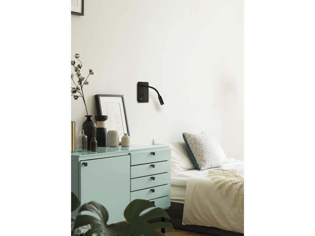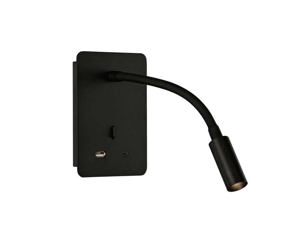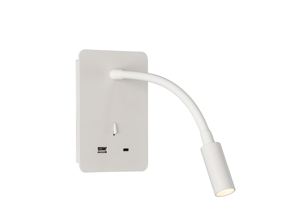Senda je perfektnou voľbou ako lampička na čítanie pre čelá spálne. Dekoratívny a praktický dizajn, ktorý obsahuje port USB typu A a ďalší port typu C na základni pre pohodlné nabíjanie vášho mobilu. Rameno s flexibilným a nastaviteľným svetlom na čítanie vo všetkých možných smeroch a polohách. Vyrobené z textúrovaného bieleho alebo textúrovaného čierneho kovu.