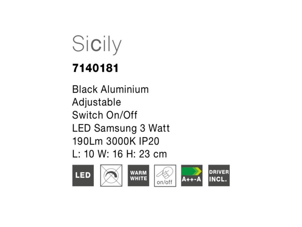 Nástenné LED svietidlo SICILY čierny hliník 3W 3000K s vypínačom