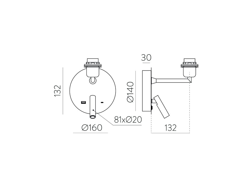 Nástenné LED svietidlo STILO, 3W + 1xE27 15W, CRI90, 2x vstup USB/USBC