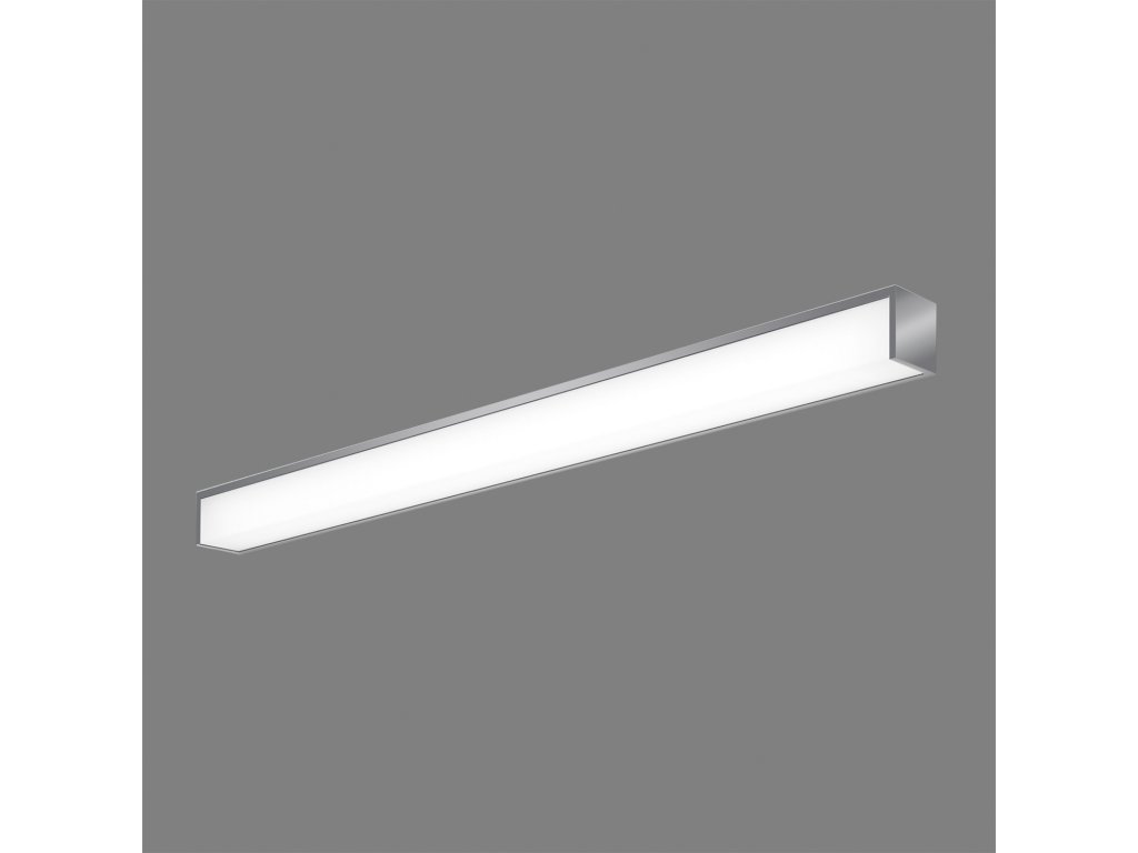 Moderné nástenné LED svietidlo TAVI s vysokým stupňom krytia IP44, vyrobené z obdĺžnikového kovového tela vo farbe chróm a opálového plastového difúzora.