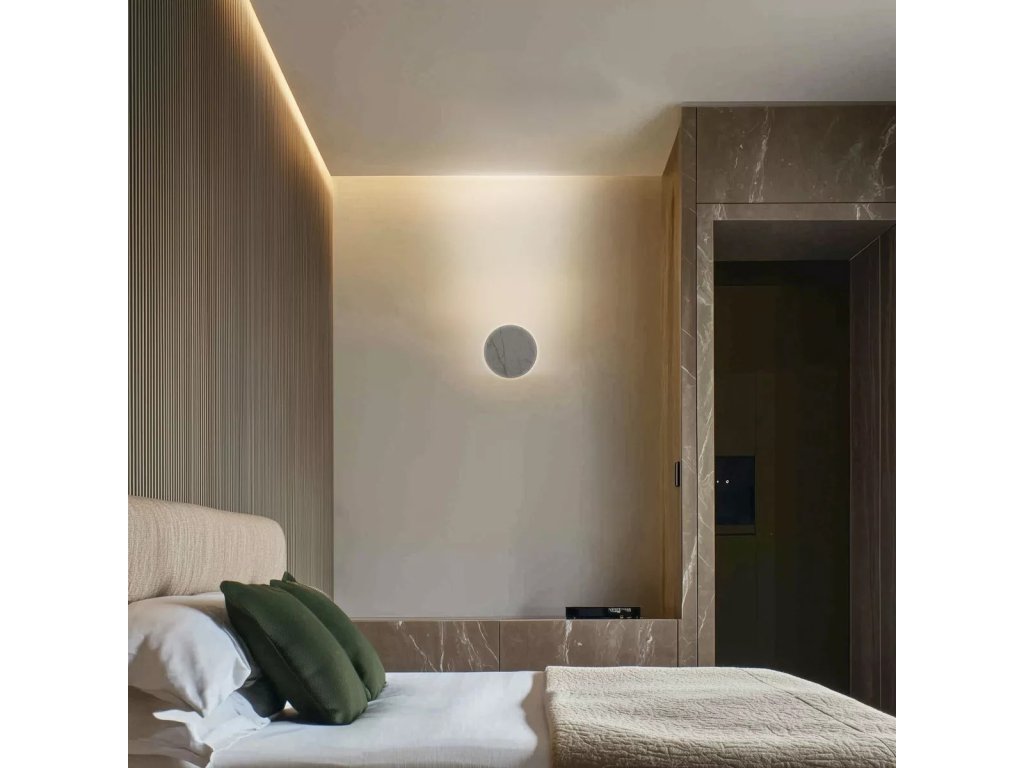 Sortiment je bohatý a rozmanitý. Na zeď si můžete vybrat lineární nástěnné svítidlo s dvojím vyzařováním, ve dvou délkách – 26 nebo 39 cm – nebo kulaté nástěnné svítidlo o průměru 26 cm se speciálním šikmým tvarem, který umožňuje nasměrovat světlo nahoru. Mnoho návrhů, vždy ve třech ušlechtilých povrchových úpravách.