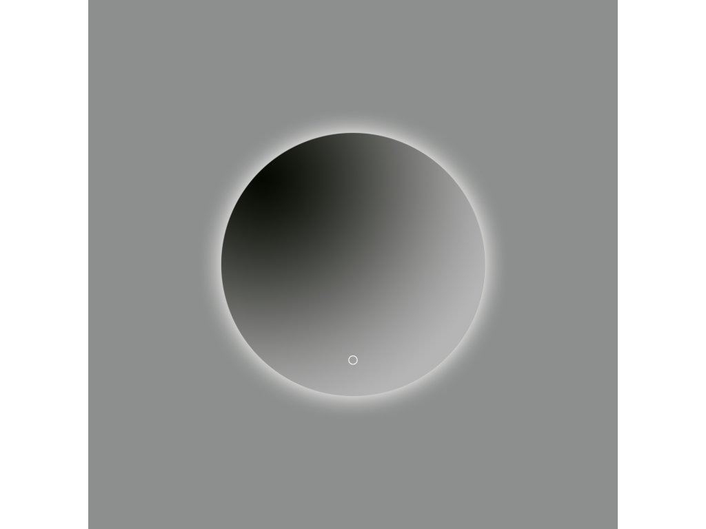 Štýlové LED kúpeľňové zrkadlo zo série Bari, vyrobené z bielej okrúhlej kovovej základne, nepriamo osvetlené a zrkadlového skla s dotykovým vypínačom ON/OFF.