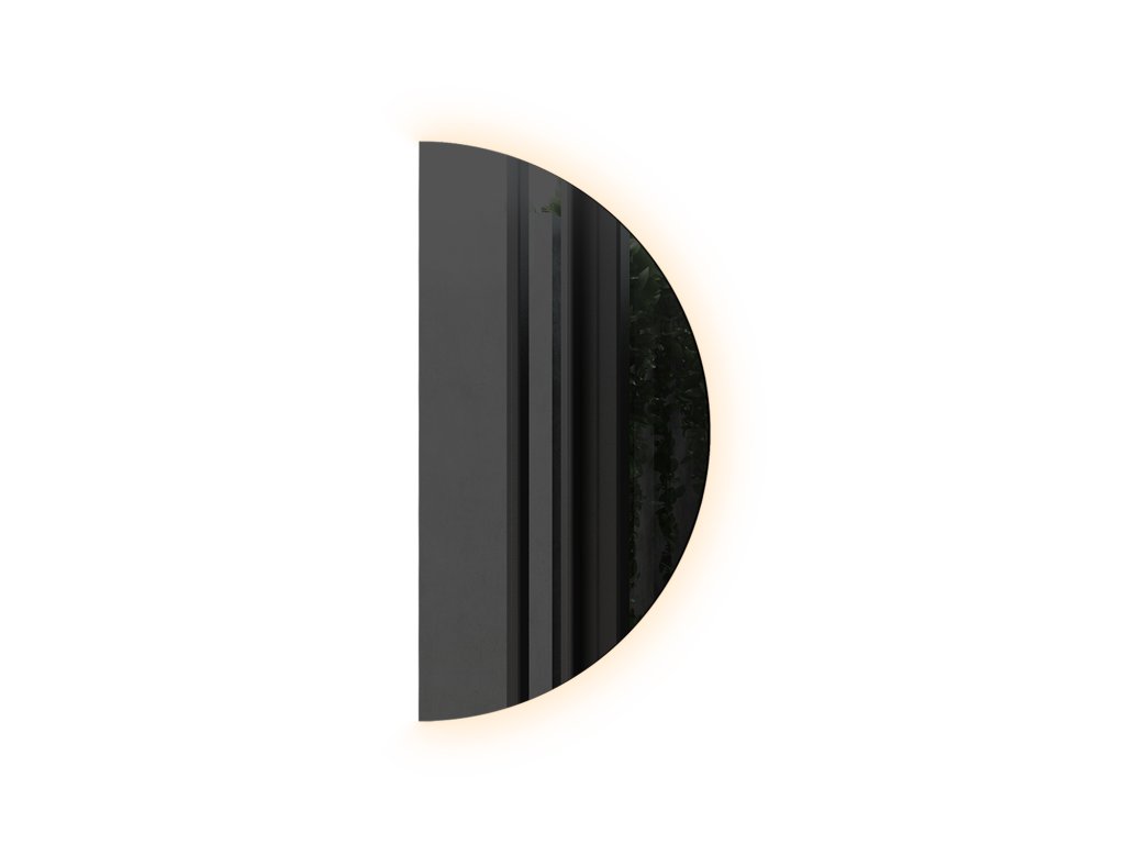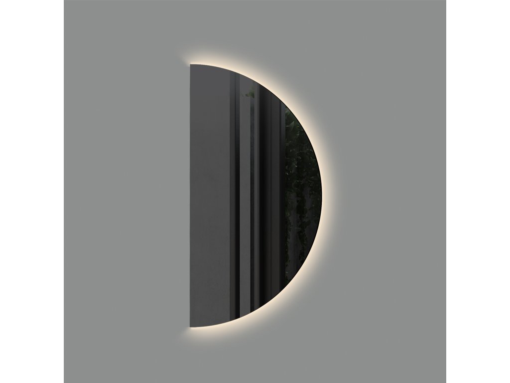 Štýlové LED kúpeľňové zrkadlo zo série Bari, vyrobené z bielej pologuľatej kovovej základne, nepriamo osvetlené a zrkadlového skla s dotykovým vypínačom ON/OFF.