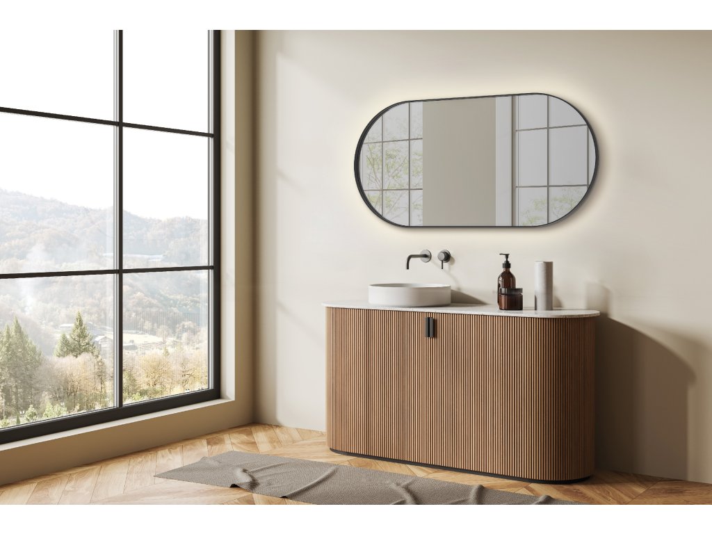 Štýlové kúpeľňové LED zrkadlo Daniela, v čiernom kovovom ráme s podsvietením.