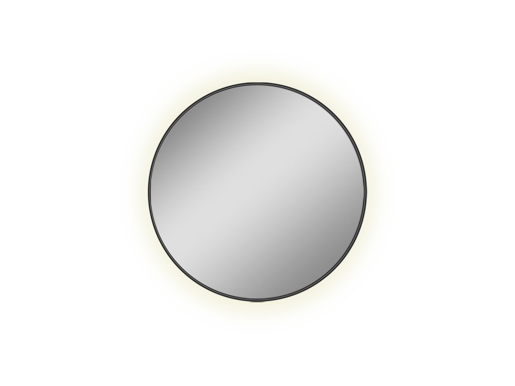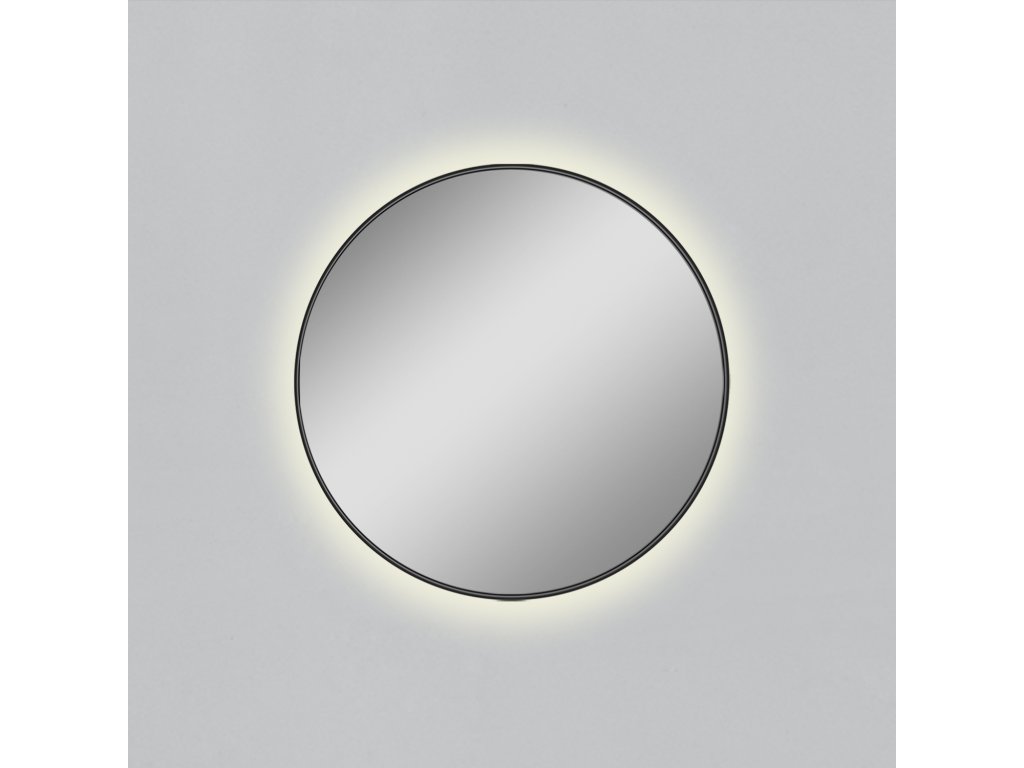 Štýlové LED kúpeľňové zrkadlo zo série Olbia, vsadené do čierneho rámu s podsvietením.