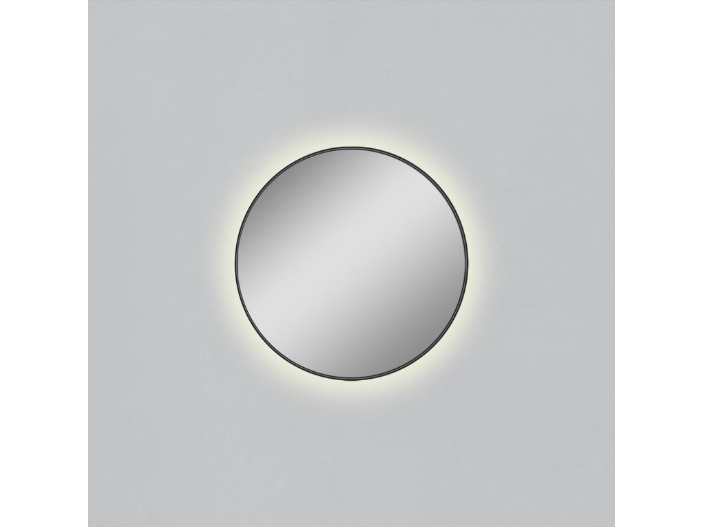 Štýlové LED kúpeľňové zrkadlo zo série Olbia, vsadené do čierneho rámu s podsvietením.