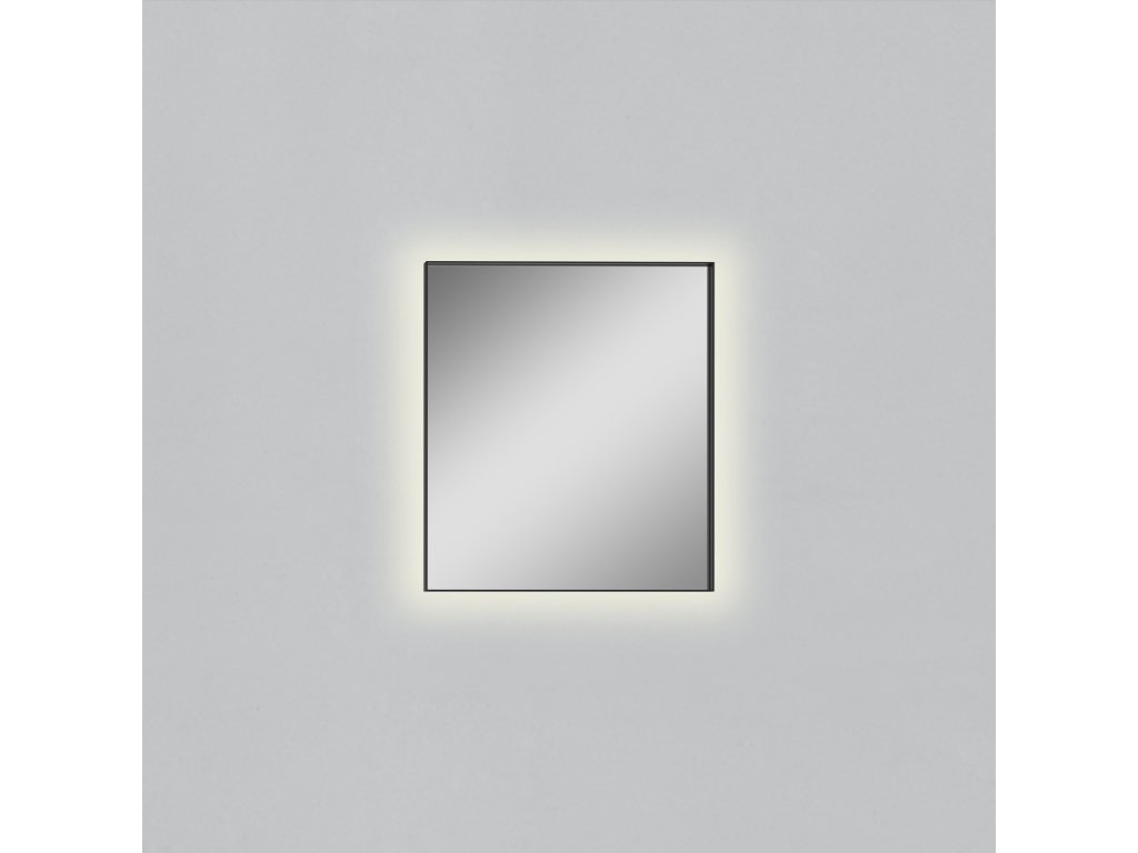 Moderné LED kúpeľňové zrkadlo zo série Oristano vsadené do čierneho rámu s podsvietením.