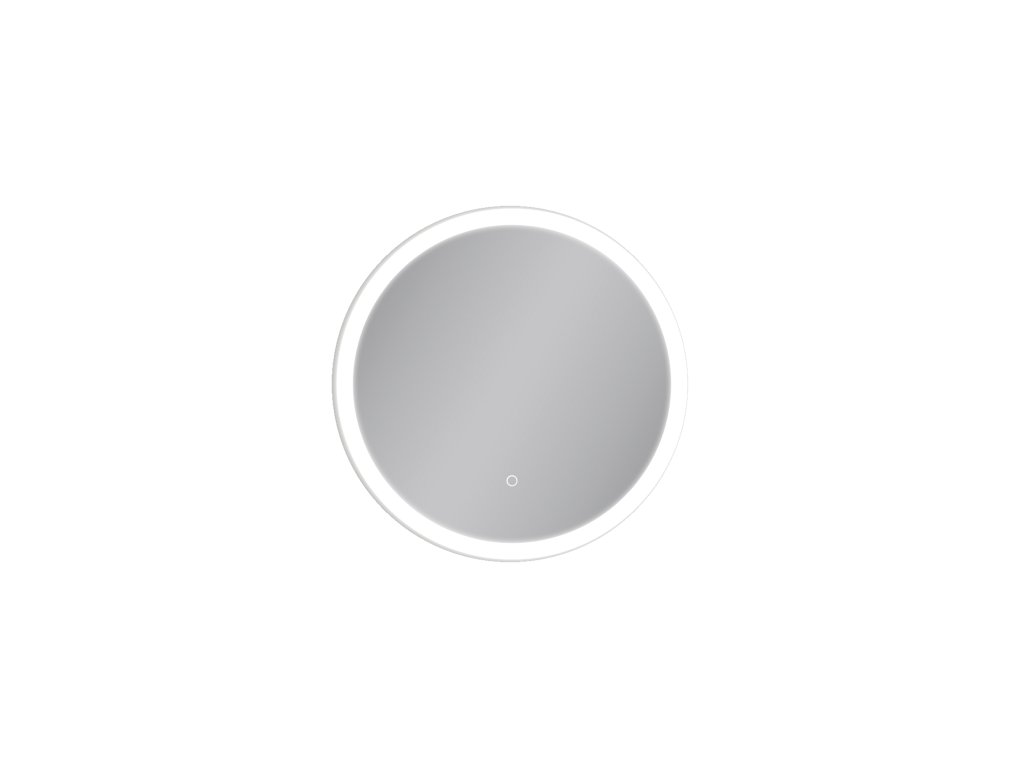 Štýlové LED-kúpeľňové zrkadlo série Petra, vyrobené z bielej kovovej kruhovej základne, s podsvietením aj priamym osvetlením as dotykovým vypínačom ON/OFF.