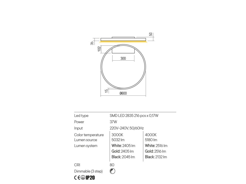 - vyberať môžete z troch veľkostí a z dvoch nastavení chromatičnosti 3000K alebo 4000K