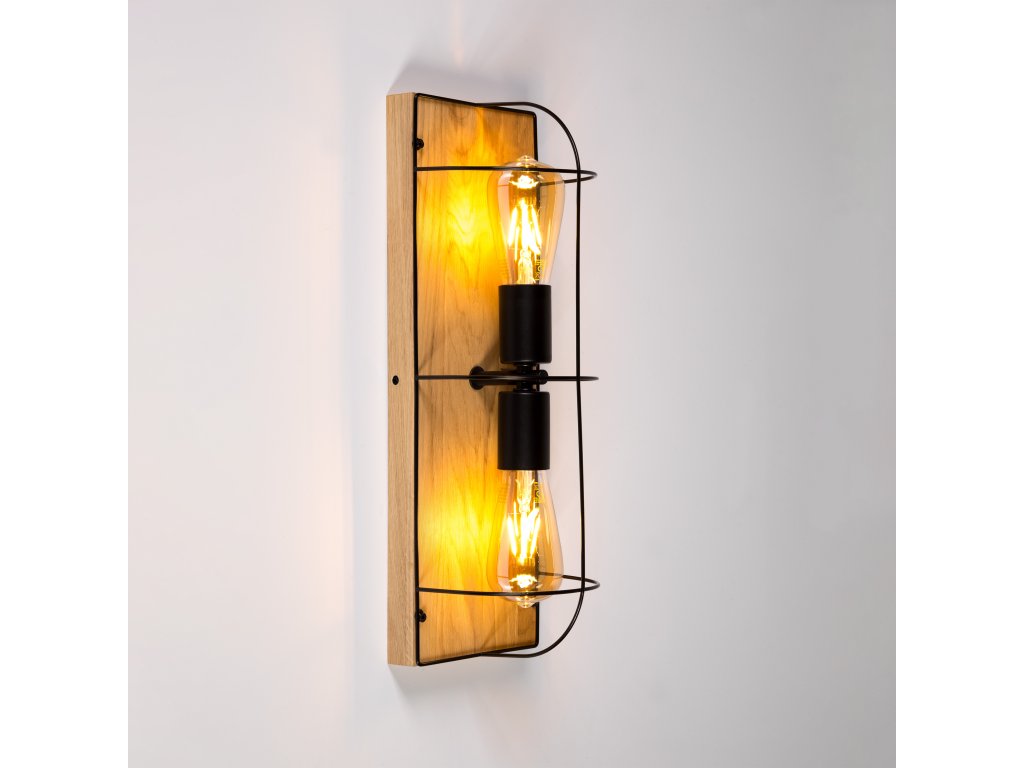Veľmi pekné nástenné či stopné svietidlo Netuno sa skladá zo základne z moreného masívneho dubového dreva kovové klietky s čiernym povrchom v industriálnom štýle inšpirovanom morským osvetlením.