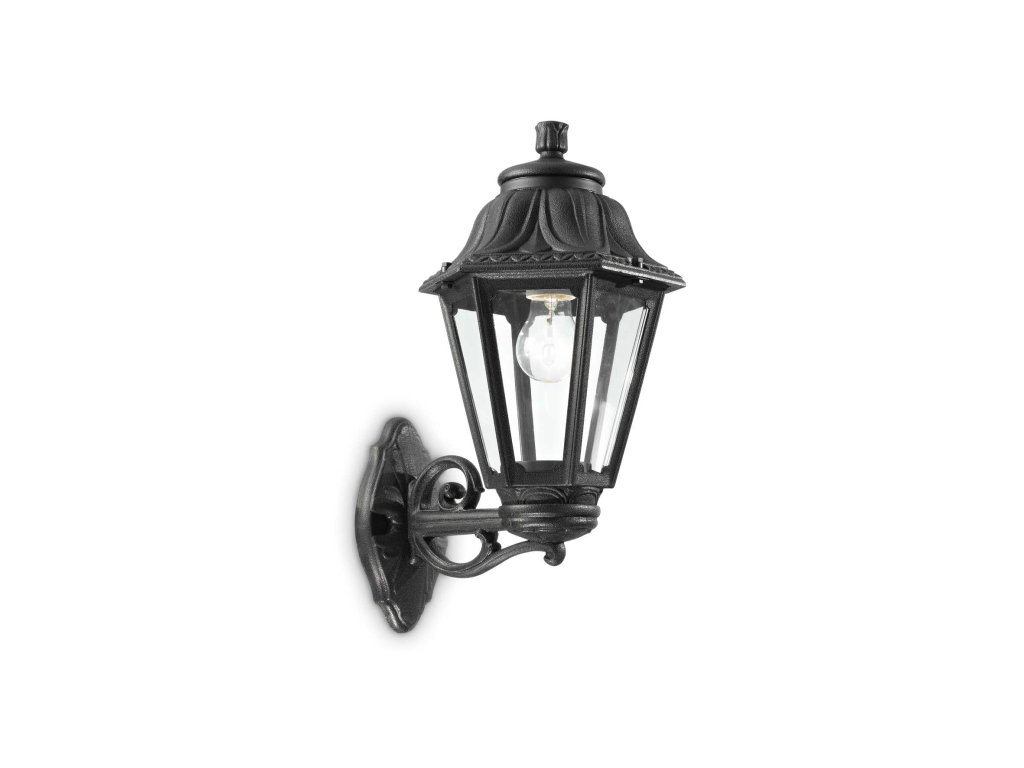 Nástenné svietidlo Anna AP1 z kolekcie vonkajšieho osvetlenia značky Ideal Lux vo väčšom prevedení s celkovou výškou 45 cm má veľmi nápaditý vzhľad v klasickom štýle. Vhodne osvieti Vašu terasu, balkón či stodolu, kam sa svojím designom bezkonkurenčne hodí. Svietidlo je vyrobené zo živice odolnej voči korózii a strate farby vplyvom UV žiarenia a teplotným výkyvom od -60 °C do +90 °C. Základňa aj rameno, ktoré je umiestnené v dolnej časti svetla, sú zhotovené v matne čiernej povrchovej úprave. Difúzor je na vrchnej časti zdobený okrasnými listami a po stranách doplnený o číre metakrylátové tabule odolné voči zožltnutiu. Skrýva päticu E27 s maximálnym príkonom 1 x 60W. Zdroj nie je súčasťou balenia, odporúčame zvoliť LED filamentovú žiarovku pre lepší svetelný efekt. Krytie IP44 chráni pred striekajúcou vodou a je vhodné na montáž do vlhkých miest.Dodatočné parametre