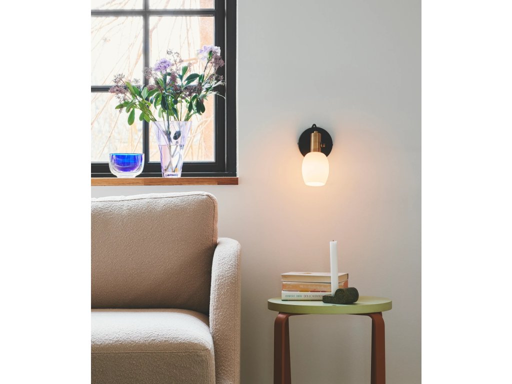 Arild je séria svietidiel v modernom dizajne s industriálnym nádychom. Biele okrúhle tienidlo z matného opálového skla elegantne dopĺňajú hnedasté mosadzné detaily. Hlavu lampy môžete jednoducho nastaviť pre smerové svetlo.