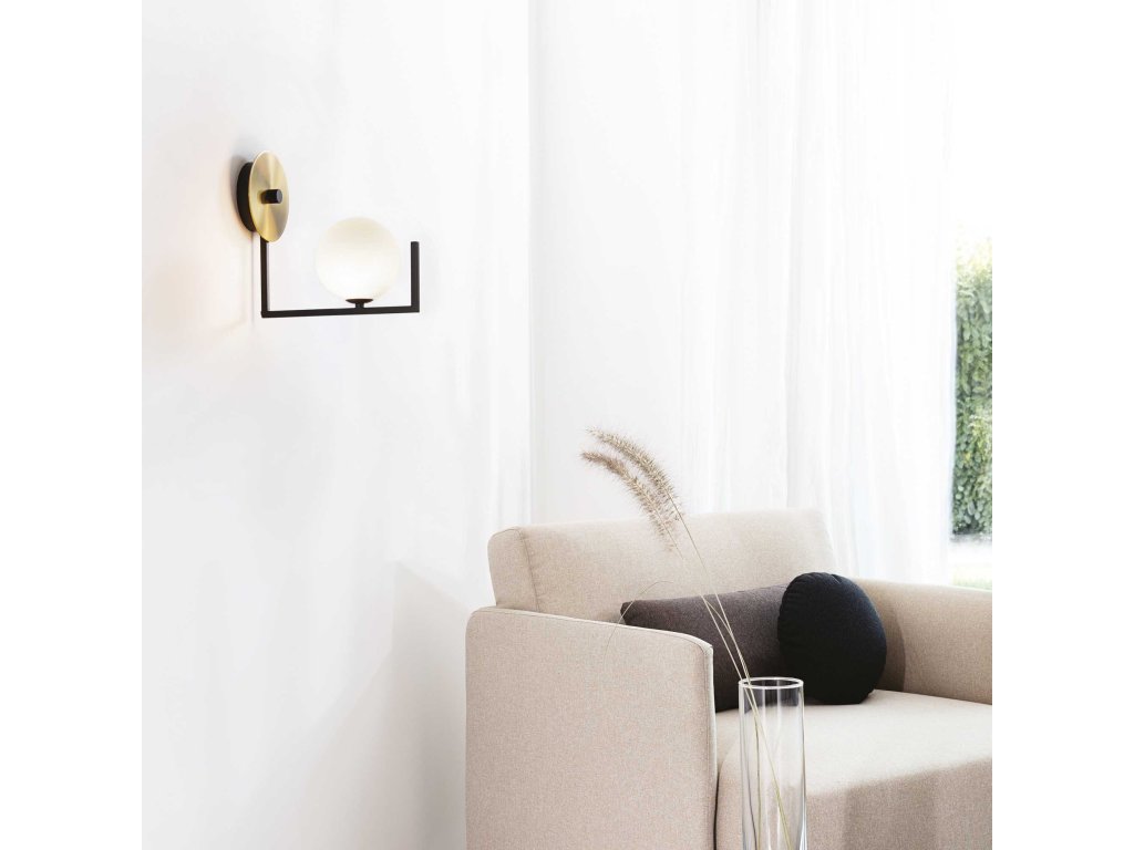 Nástenné svietidlo BIRDS z kolekcie designového osvetlenia značky Ideal Lux je určené na montáž do moderne zariadených interiérov. S krytím IP20 nie je vhodné do miestností s výskytom vyššej vlhkosti vzduchu. Okrúhla základňa s mosadznou povrchovou úpravou a matne čierny hranatý rám sú zhotovené z lakovaného kovu. Celý dizajn dopĺňa okrúhly biely difúzor z fúkaného skla leptaného kyselinou, ktorý je osadený päticou G9 pre žiarovku s maximálnym príkonom 1 x 15 W. Súčasťou balenia je LED G9 žiarovka (obj. kód 209043) s príkonom 1 x 3 W so teplotou 370lm žlté svetlo). Celkové rozmery svietidla sú 25,5 x 24 x 13 cm. Je určené na napájanie zo siete na 220-240V a vzťahuje sa naň záruka 5 rokov.Dodatočné parametre