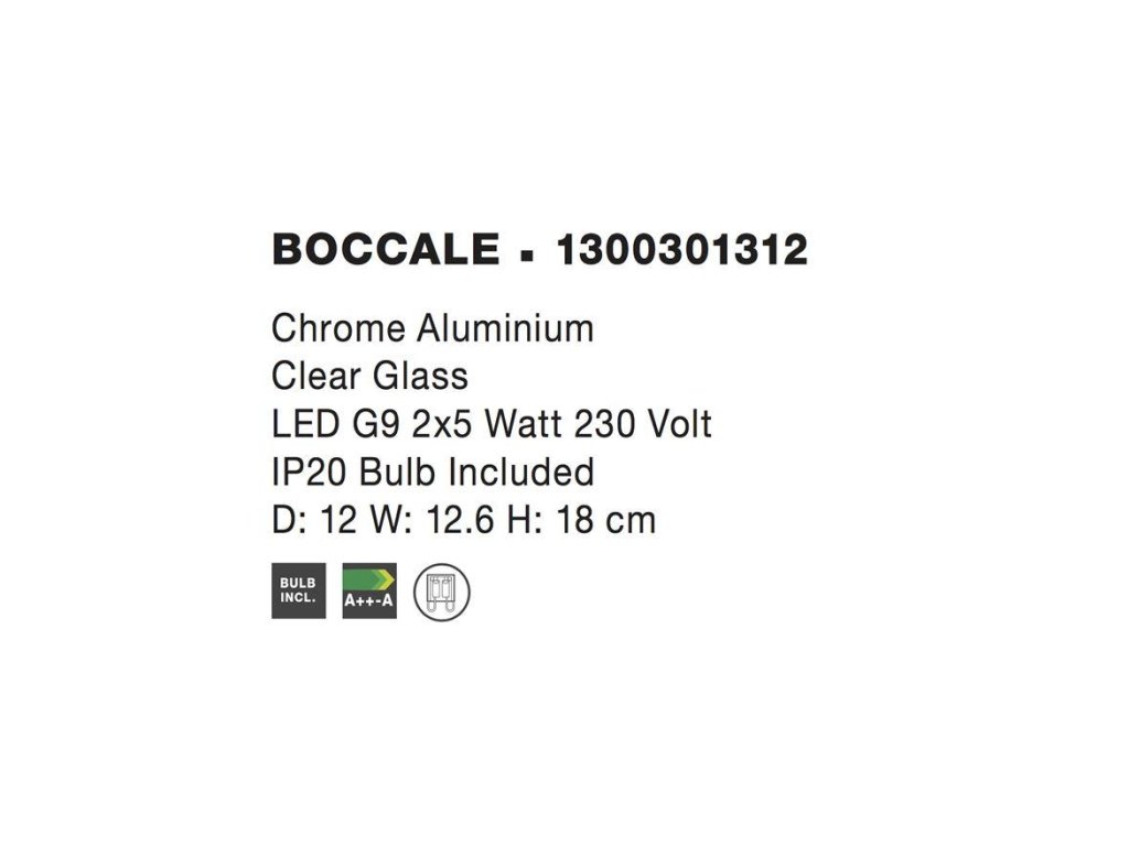 Nástenné svietidlo BOCCALE chrómovaný hliník číre sklo G9 2x5W vr. žiarovky