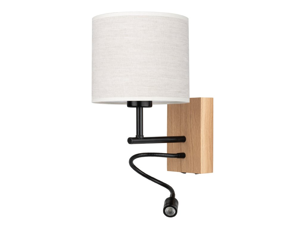 Valcovité tienidlo vyrobené z vysoko kvalitnej ľanovej látky dokonale ladí s kombináciou kovového a dubového tela všestrannej lampy.