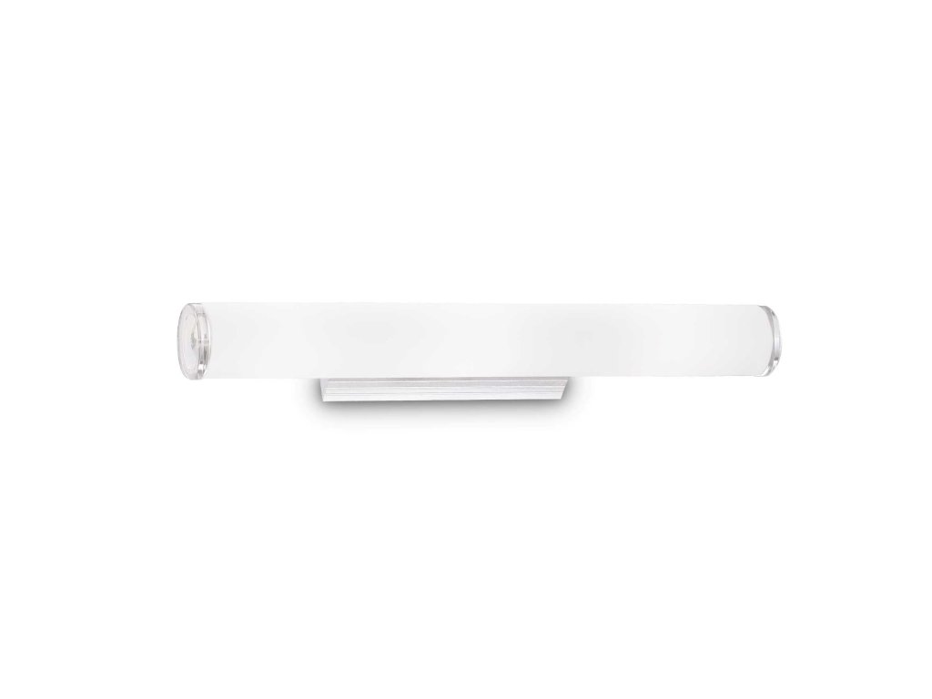 Nástenné svietidlo Camerino z kolekcie interiérového osvetlenia značky Ideal Lux v modernom sklenenom dizajne. Na hliníkovej základni je umiestnený trubicový difúzor s dĺžkou 65 cm, ktorý je zhotovený z bieleho fúkaného skla leptaného kyselinou a je na oboch stranách zakončený čírou akrylovou koncovkou. Svietidlo je osadené päticami E14 pre žiarovky s maximálnym príkonom 4 x 40 W. Zdroje nie sú súčasťou balenia. Odporúčame zvoliť LED žiarovky na úsporu elektrickej energie. Krytie IP20 je vhodné pre vnútornú inštaláciu. Celkové rozmery svietidla sú 8 x 65 x 11,5 cm. Je určené na napájanie zo siete na 220-240 V a vzťahuje sa naň predĺžená záruka 5 rokov.Dodatočné parametre