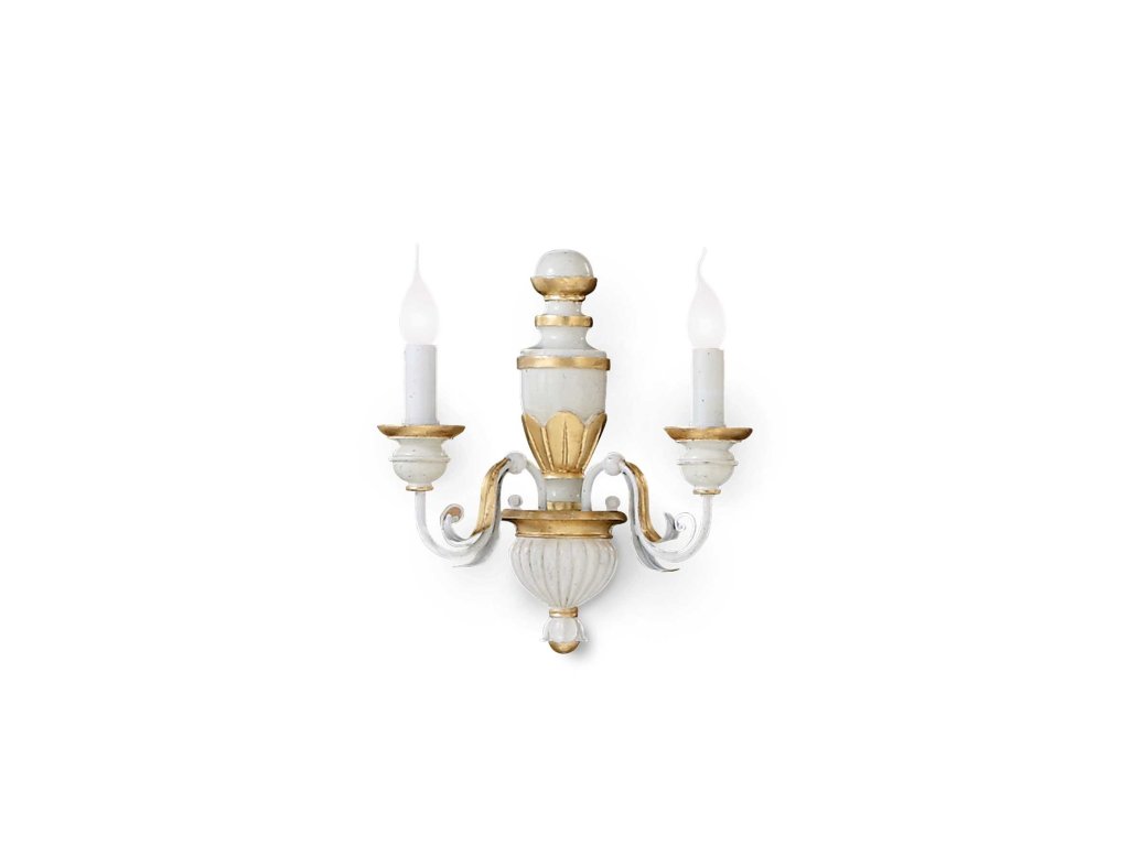 Nástenné svietidlo Firenze z kolekcie rustikálneho osvetlenia značky Ideal Lux sa dokonale hodí do klasicky zariadených domácností a hotelov. živice v bielej farbe a je doplnené o ručne tvarované kovové ramená. Svietidlo je ručne dekorované zlatými prvkami a osadené päticami E14 pre maximálne príkony 2 x 40 W. naň predĺžená záruka 5 rokov.Dodatočné parametre