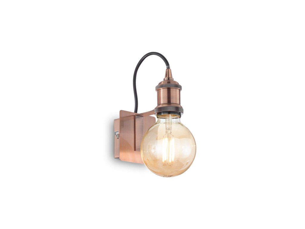 Minimalistické retro nástenné svietidlo z kolekcie interiérového osvetlenia Ideal Lux je tvorené iba kovovou základňou a objímkou v medenej povrchovej úprave a prívodným káblom, ktorý je potiahnutý čiernou textíliou. Svietidlo ideálne osvieti steny obývacej izby, spálne alebo hotelového interiéru. Osadené je päticou E27 o maximálnom príkone 1 x 60 W. Žiarovka nie je súčasťou balenia, odporúčame použiť úspornú LED žiarovku typu Globo, ktorá vytvorí pravý vintage efekt. Krytie IP20 vhodné na použitie do interiéru.Dodatočné parametre