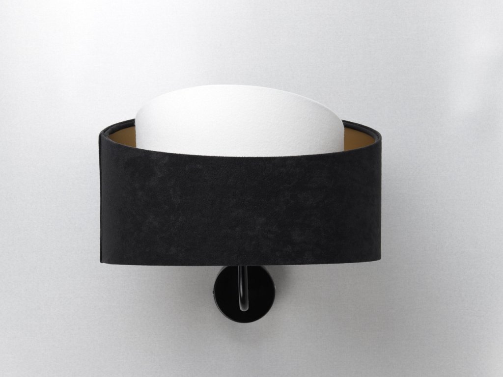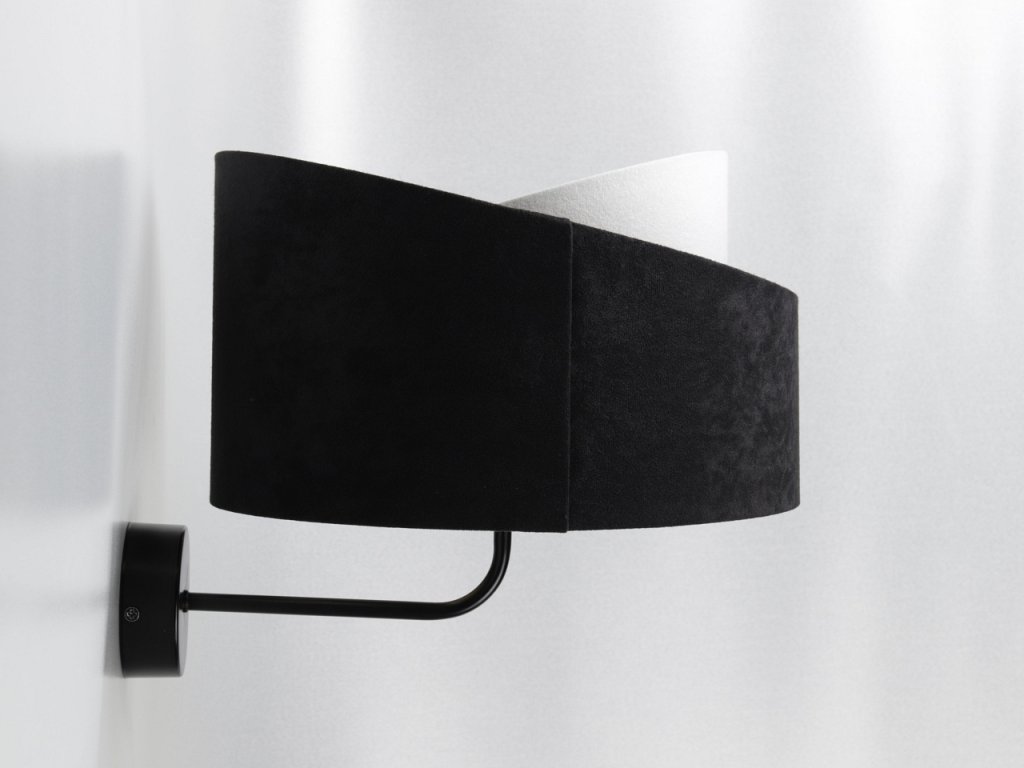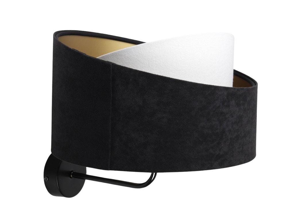 Ručne vyrobené nástenné svietidlo Galaxy vyrobené z velúrovej tkaniny v čiernej farbe v kombinácii s bielou farbou je 28 cm.