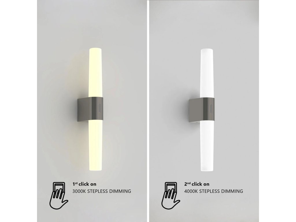 Moderné nástenné LED svietidlo, ktoré vychádza z dielne dánskych návrhárov. Spája eleganciu a praktickosť. Vďaka moderným technológiám môžete krátkym dotykom zmeniť teplotu svetla (3000K alebo 4000K). Dlhým dotykom svetlo zosilňuje alebo naopak stlmíte. Ponúkame v chrómovom alebo niklovom variante. Svietidlo môžete umiestniť ako vodorovne, tak vertikálne. Vhodné do modernej kúpeľne vďaka vysokej ochrane krytia IP44, kde bude skvelým spoločníkom.