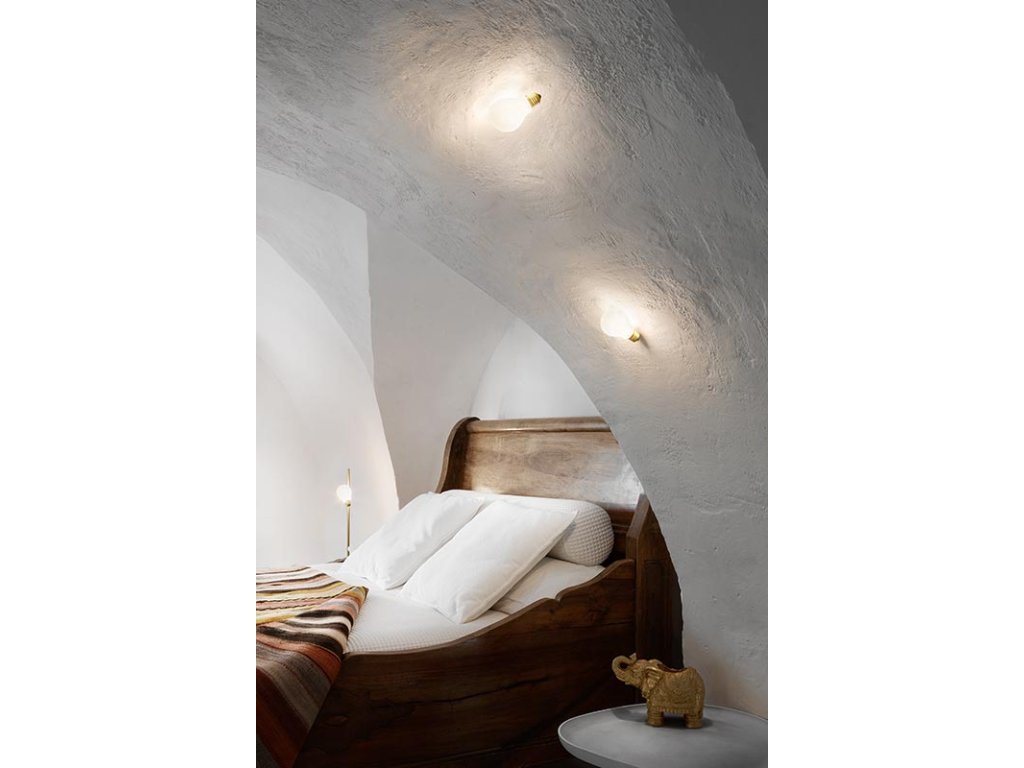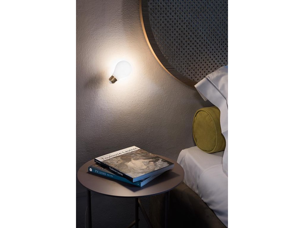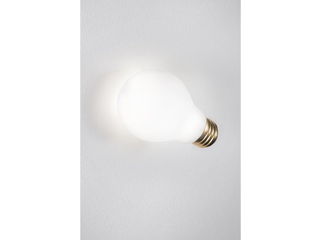 Hovorí sa, že inšpirácia prichádza, ako keď sa vám v hlave rozsvieti žiarovka. Idea sa zbavuje dizajnu a ponecháva podstatu svetla; trojrozmernú "žiarovku" a mosadznú skrutkovaciu päticu, kúzelne zavesenú na nástennom podstavci, ktorý sa dodáva v brúsenej mosadze, zrkadlovom alebo bielom matnom prevedení. K dispozícii je aj verzia nástenného svietidla pre zapustenú montáž, ktorá hrá na nečakaný, ironický efekt nápadu, ktorý sa objaví, keď a kde to najmenej čakáte.