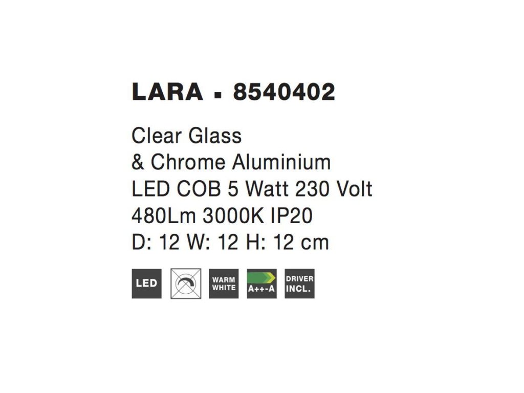 Nástenné svietidlo LARA číre sklo a chrómová základňa LED 5W