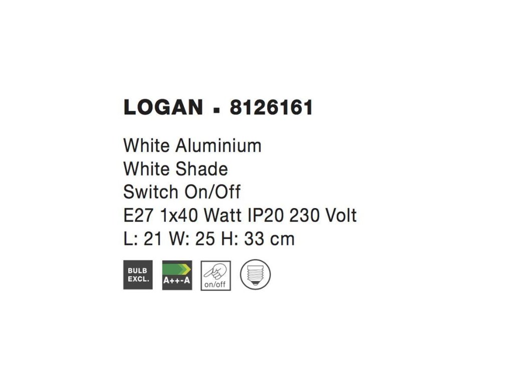 Nástenné svietidlo LOGAN biela hliník biele tienidlo E27 1x12W vypínač na tele
