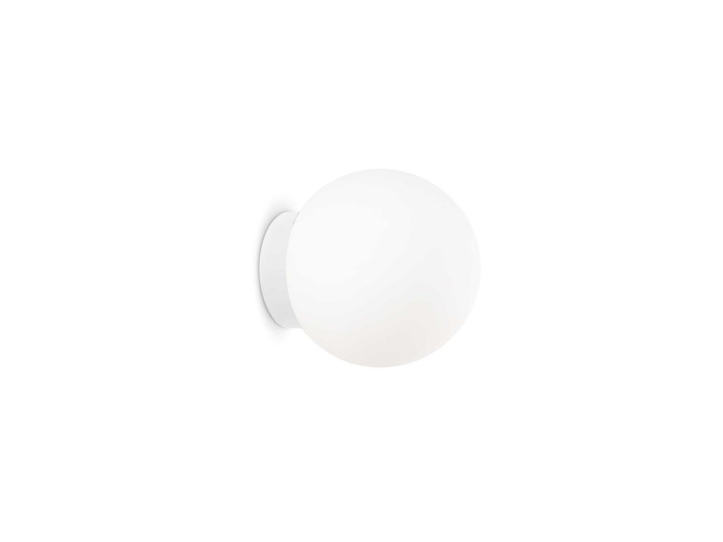 Nástenné svietidlo MAPA s bielou kovovou základňou a upevňovacím systémom. Difúzor z fúkaného a kyselinou leptaného bieleho skla. Svietidlo je ideálne na osvetlenie chodieb.