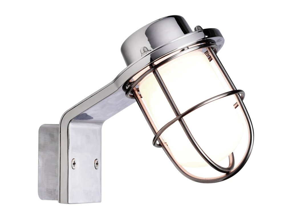 Kúpeľňové nástenné svietidlo Marina kombinuje kvalitné spracovanie s retro industriálnym štýlom, ktorý osloví milovníkov škandinávskeho dizajnu. Elegantné prevedenie si môžete vybrať v chrómovej úprave alebo v čiernej farbe. Tienidlo z mliečneho skla poskytuje mäkké, neoslňujúce svetlo, ideálne pre pohodlie v kúpeľni. Vďaka krytiu IP44 spĺňa všetky normy a je chránené proti vlhkosti a pare.