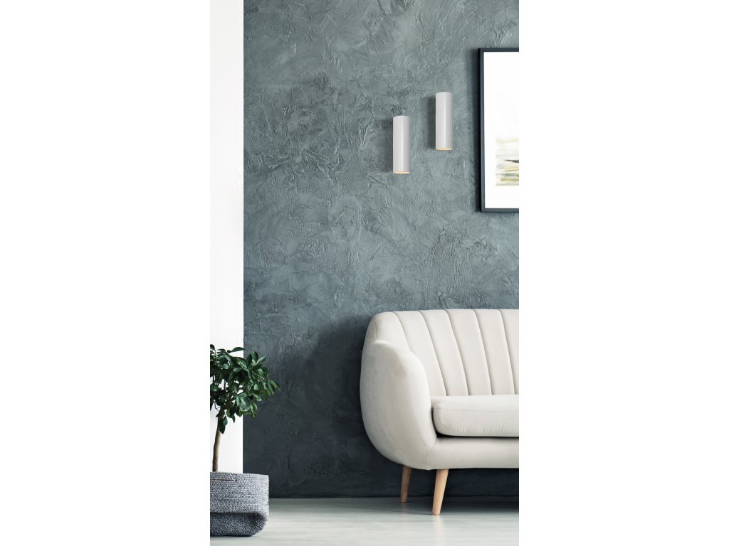 Funkčné nástenné svietidlo zo série Modrian, vyrobené z hliníkovej s valcovým hliníkovým tienidlom s obojstranným svetelným lúčom.