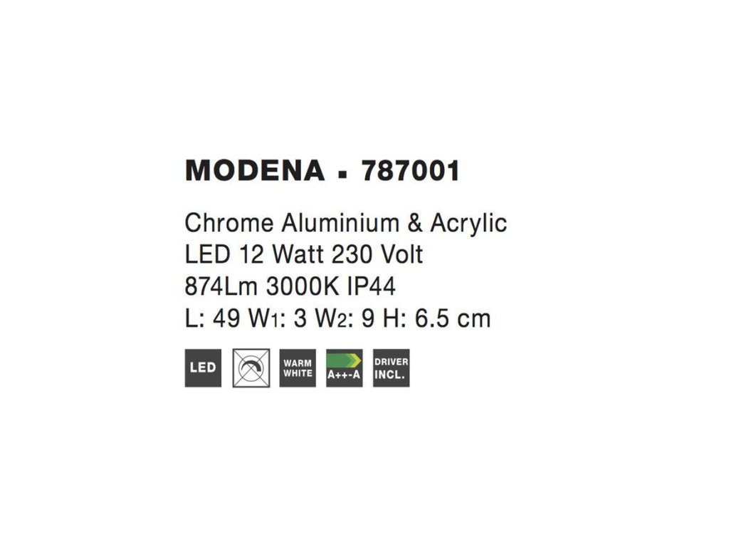 Nástenné svietidlo nad zrkadlo MODENA, 49cm, LED 12W 3000K IP44