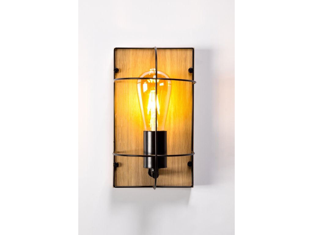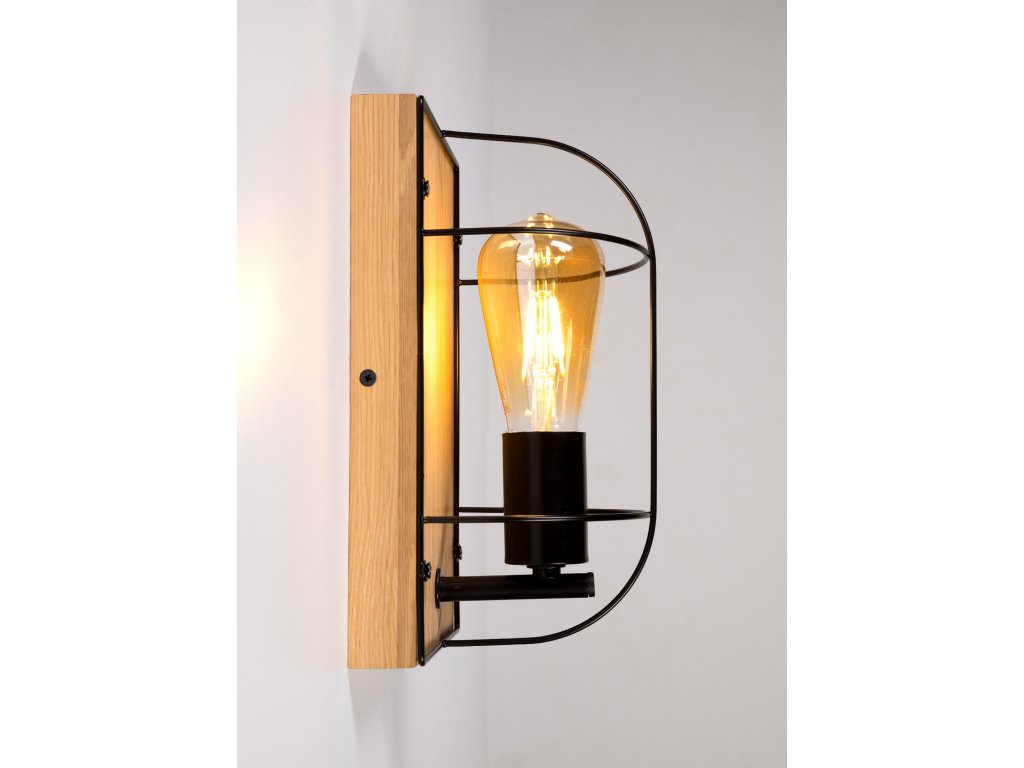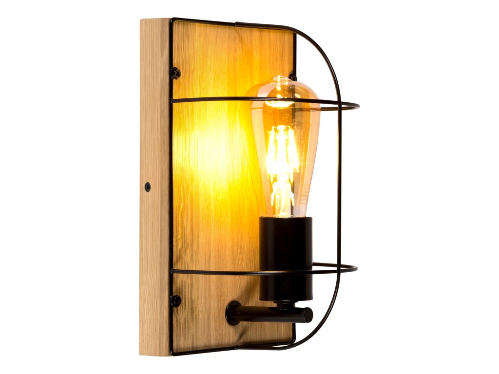 Veľmi pekné nástenné svietidlo Netuno sa skladá zo základne z moreného masívneho dubového dreva kovové klietky s čiernym povrchom v industriálnom štýle inšpirovanom morským osvetlením.