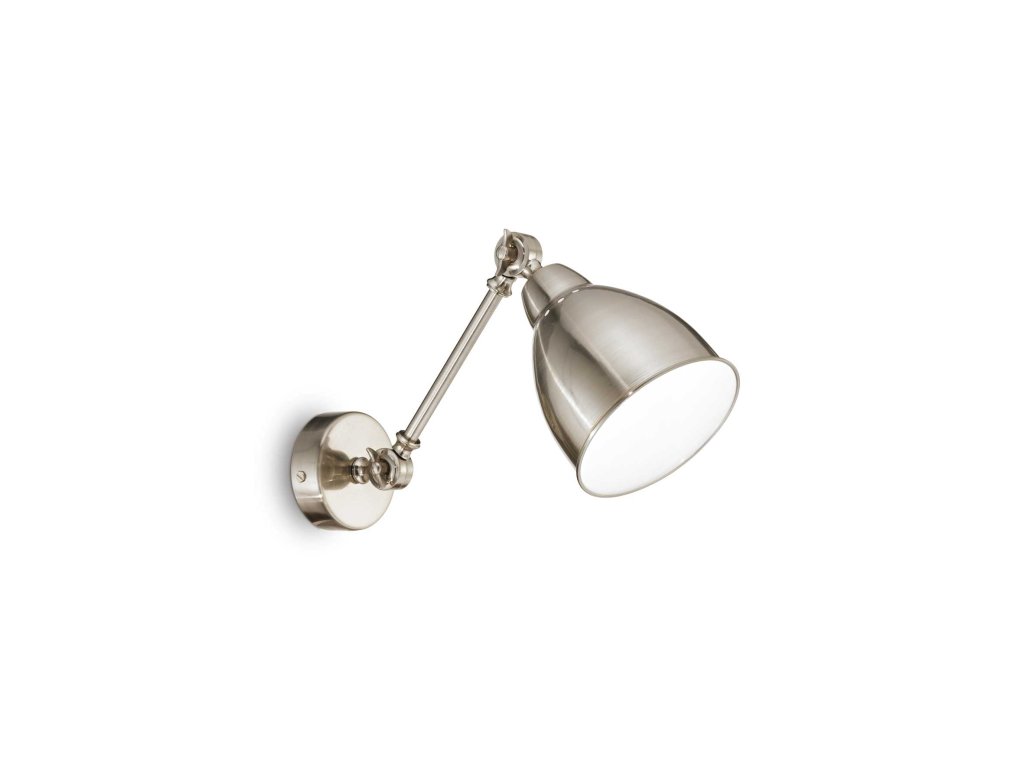 Nástenné svietidlo Newton z kolekcie moderného osvetlenia talianskej značky Ideal Lux je ideálnou voľbou do každého interiéru vďaka svojmu jednoduchému designu. Skvele osvieti obývaciu izbu, spálňu či pracovňu. Jeho telo a difúzor sú zhotovené z kvalitného kovu s matne niklovou povrchovou úpravou. Rameno aj difúzor sú flexibilné a je možné ich nastaviť, ako je potrebné. Tienidlo je doplnené o biele smaltované vnútro a osadené päticou E27 pre žiarovku s maximálnym príkonom 1 x 60 W. Zdroj nie je súčasťou balenia, odporúčame zakúpiť LED žiarovku pre lepší rozptyl svetla a úsporu elektrickej energie. Krytie IP20 je vhodné na vnútorné použitie. Celkové rozmery sú 23 x 44 x 14 cm. Je určené na napájanie zo siete na 220-240 V.Dodatočné parametre