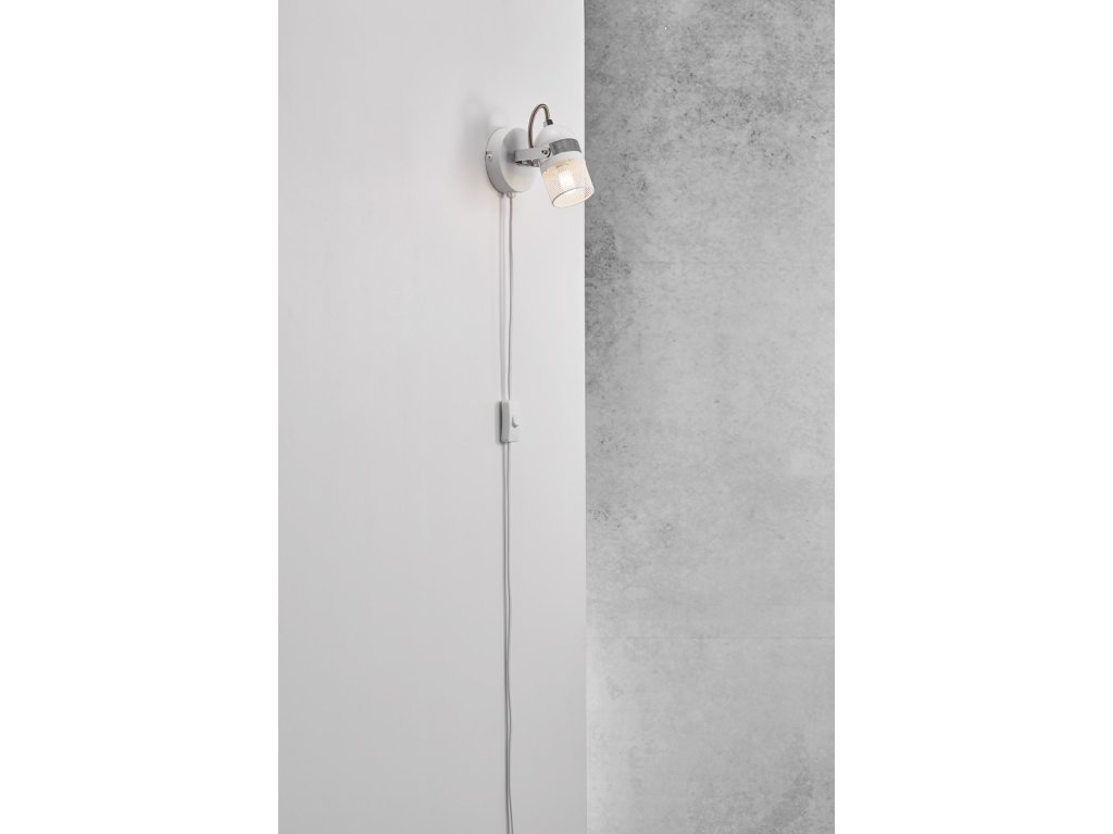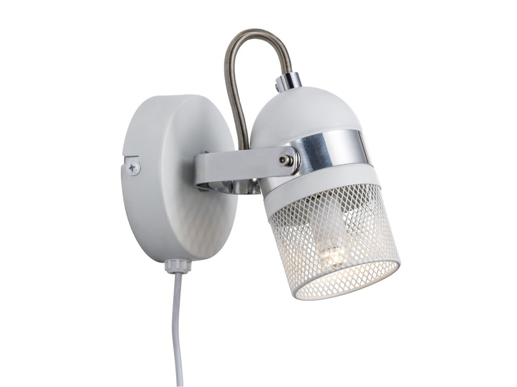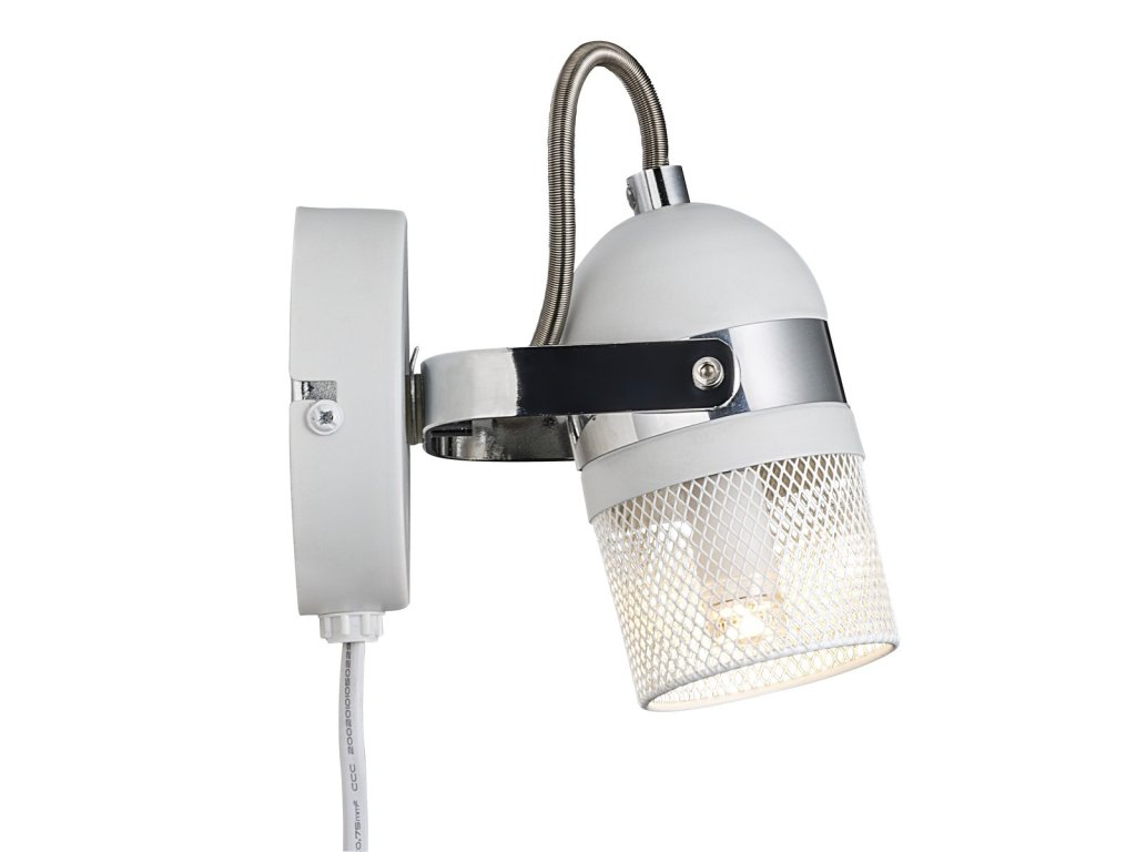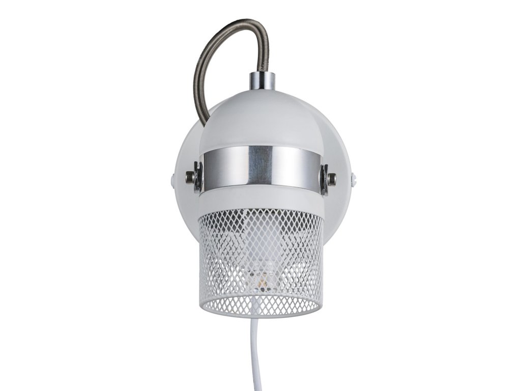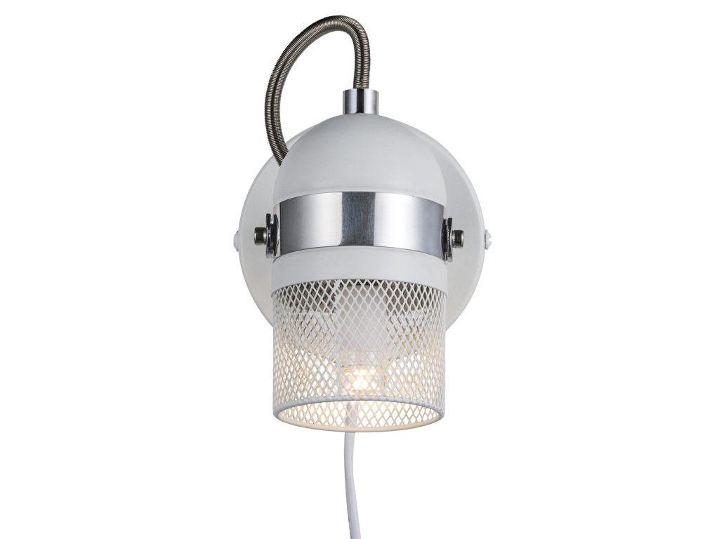 Funkčné nástenné svetlo Agnes od Nordluxu s drôteným pletivom na okrúhlej základni v bielom prevedení.