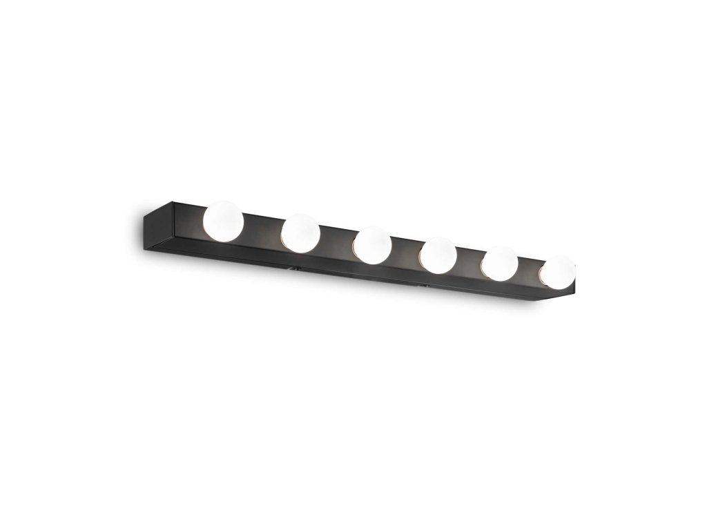 Zaujímavé nástenné svietidlo z kolekcie dizajnového osvetlenia Ideal Lux v kratšom prevedení s dĺžkou 60,5 cm v čiernej farbe vhodné predovšetkým na nasvietenie zrkadiel, chodieb, ale aj stien obývacích priestorov. Svietidlo tvorí iba kovový rám, ktorý je osadený päticami E14 s maximálnym príkonom 6 x 40 W. Žiarovky, ktoré nie sú súčasťou balenia, neprekrýva žiadny difúzor a svietidlo tak poskytuje množstvo možností, ako meniť jeho vzhľad použitím rôznych typu žiaroviek s danou päticou. Krytie IP20 je vhodné na použitie do interiéru.Dodatočné parametre