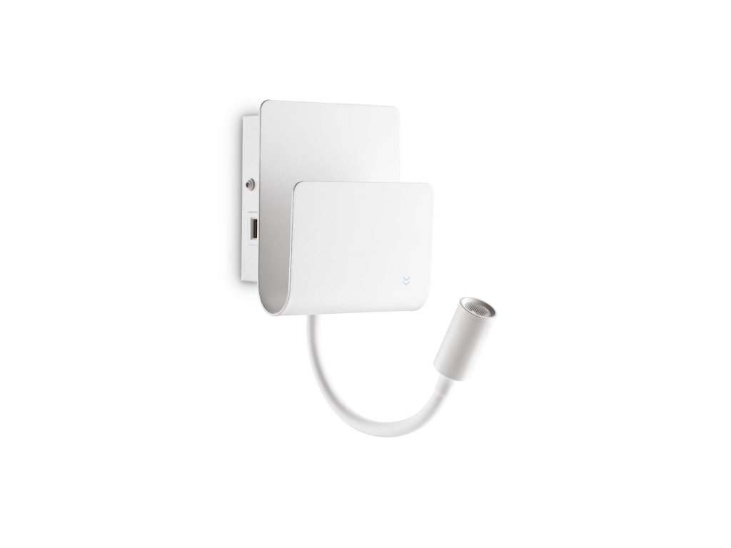 Nástenné svietidlo Probe AP2 z kolekcie moderného osvetlenia talianskej značky Ideal Lux má prakticky riešený dizajn, ktorý poslúži v každej spálni, pracovni či knižnici, a to ako pri čítaní Vami obľúbenej literatúry, alebo pri práci na počítači. Jeho hranatá základňa o celkovej šírke 12 cm je vyrobená z hliníka s matne bielou povrchovou úpravou nanášanou metódou práškovania. Jej súčasťou je priehradka na odloženie knihy alebo časopisu. Na jej ľavom boku je umiestnený USB port na nabíjanie Vášho mobilného telefónu, tabletu či čítačky kníh. Svietidlo má dva difúzory, jeden je umiestnený z vrchu základne a je vyrobený z akrylu, druhý je umiestnený na pohyblivom ramene vedúcom z jej dolnej časti. Súčasťou svietidla sú dva vypínače. Prednosťou je integrovaný LED zdroj s príkonom 9W, svietivosťou 580lm, teplotou chromatickosti 3000K (neutrálne žlté svetlo) a dlhou dobou životnosti až 20 000 hodín. Rozmery celého svetla sú 12 x 23,5 x 13,5 cm. Krytie IP20 je určené pre vnútornú montáž.Dodatočné parametre