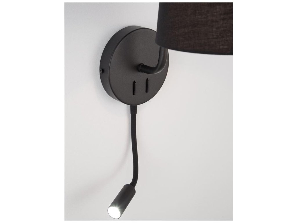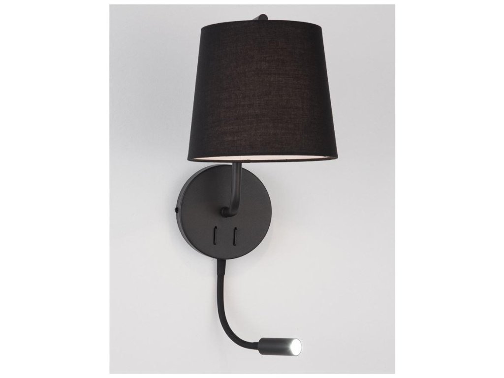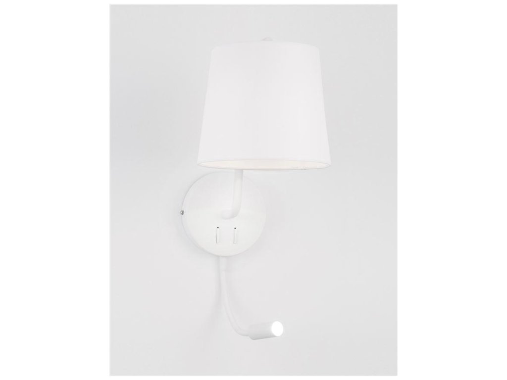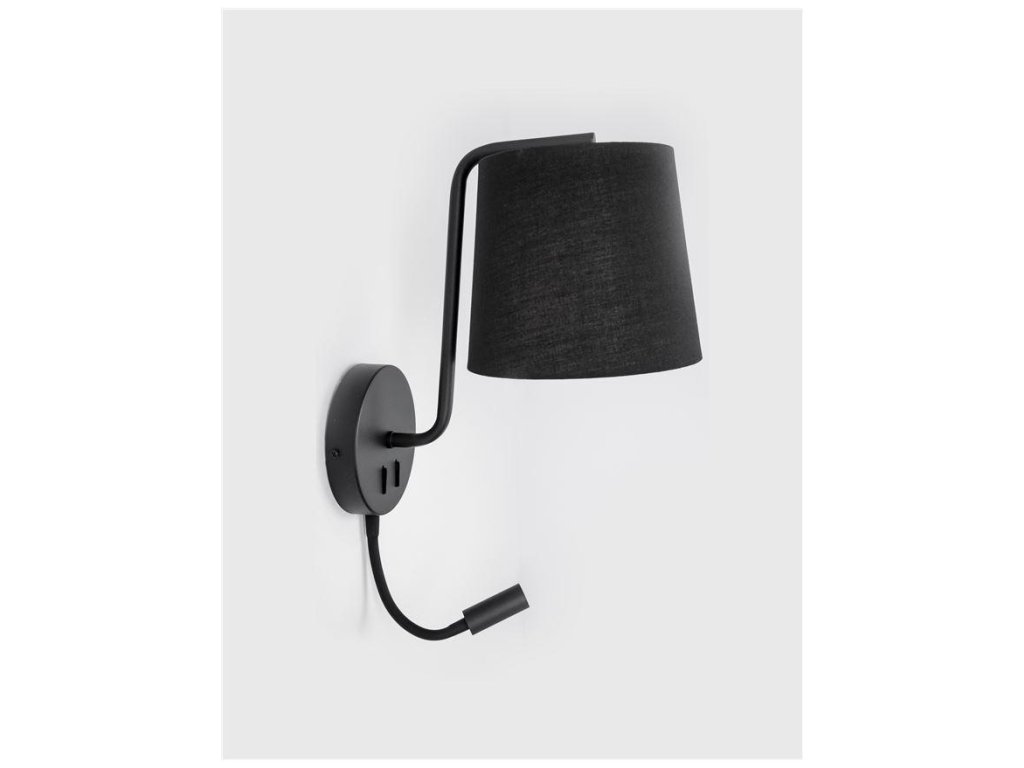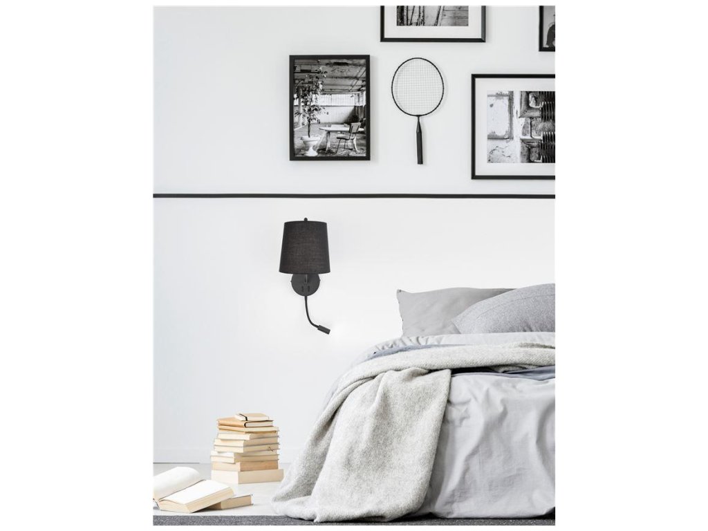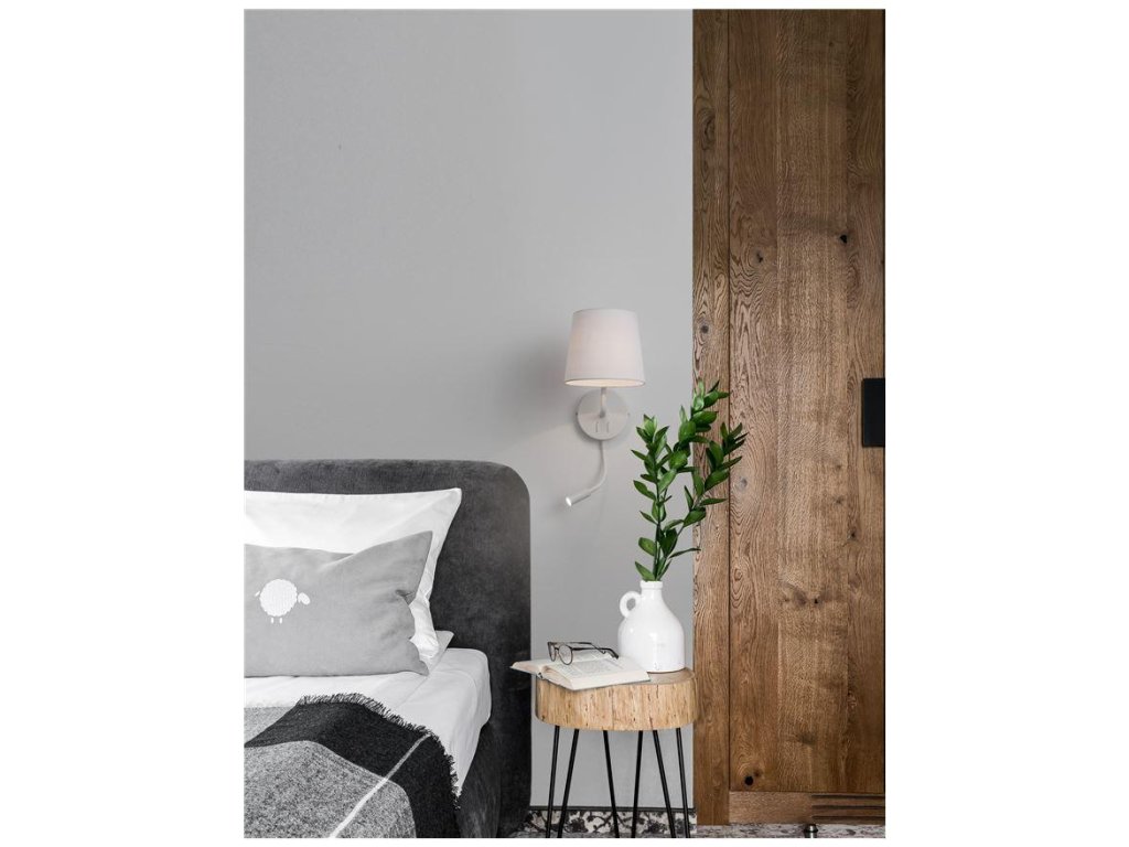 Dizajnová nástenná lampa SAGE s textilným tienidlom a čítacou LED lampičkou. Svietidlo sa bude hodiť nielen do moderných priestorov.