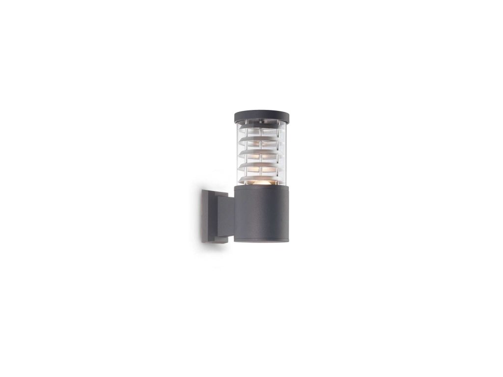 Vonkajšie nástenné svietidlo Tronco v šedom prevedení s výškou 25 cm z kolekcie záhradného osvetlenia značky Ideal Lux účelne aj elegantne rozsvieti vonkajšie steny domu, terasu, balkón alebo priestor nad vchodovými dverami. Na výrobu tela svietidla bol použitý tlakovo liatie hliník s antracitovou povrchovou úpravou. Difúzor z číreho pyrexového skla efektne dopĺňajú hliníkové kruhové prvky. Záhradné svietidlo je osadené päticou E27 s maximálnym príkonom 1 x 60 W. Žiarovka nie je súčasťou balenia, pre úsporu elektrickej energie odporúčame použiť LED úsporný zdroj s dlhou životnosťou. Krytie IP44 vyjadruje vodeodolnosť a vhodnosť pre použitie vo vlhkom vonkajšom prostredí. Celkové rozmery svietidla sú 25 x 11 x 18 cm. Je určené na napájanie zo siete na 220-240 V.Dodatočné parametre