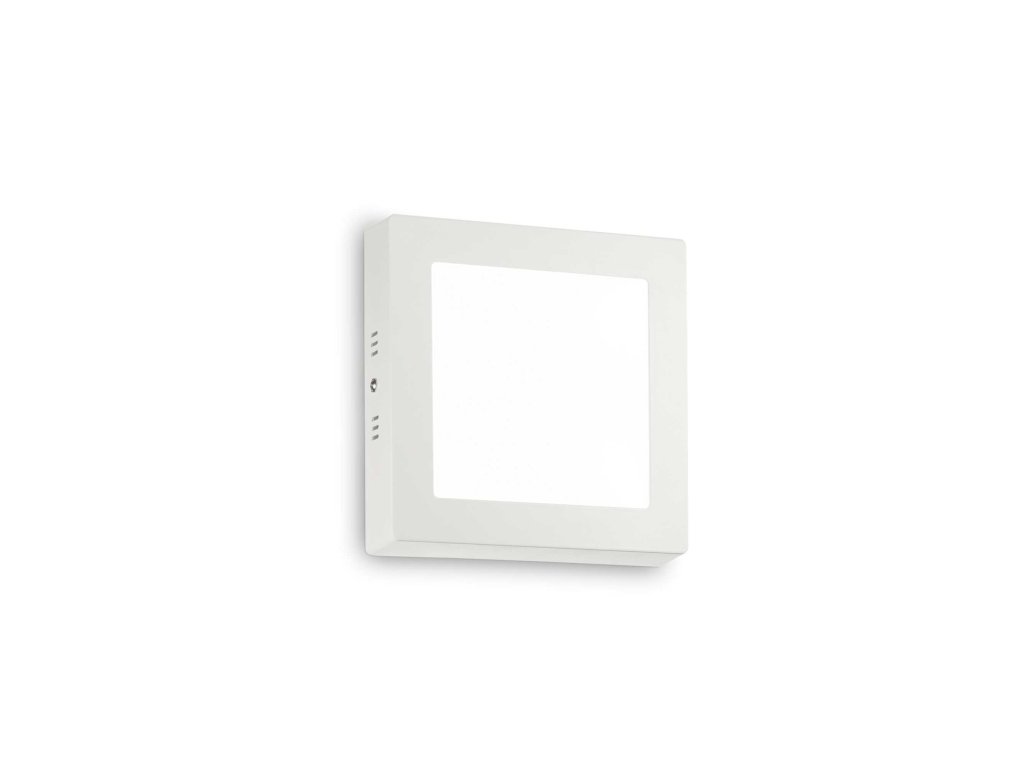 Moderné stropné a nástenné LED svietidlo Universal v hranatom variante s dĺžkou strany 17,5 cm z kolekcie interiérového osvetlenia talianskej značky Ideal Lux je vhodné vďaka svojmu nadčasovému dizajnu pre stropnú alebo nástennú inštaláciu do akéhokoľvek interiéru. Kovový rám je bielo lakovaný, difúzor je zhotovený z plastu a veľmi dobre rozptyľuje príjemné teplé biele svetlo s teplotou chromatickosti 3000 K, ktoré vychádza z integrovaných vysoko výkonných úsporných LED diód s celkovým príkonom 1 x 19 W so silnou svietivosťou až 1250 lm a životnosťou. Je súčasťou svietidla bez možnosti výmeny, teda je úplne bezúdržbové. Krytie IP20 označuje vhodnosť použitia iba v interiéri bez zvýšenej vlhkosti. Výrobca poskytuje predĺženú záruku 5 rokov. Svit je vyžarovaný v uhle 110 stupňov. Súčasťou svietidla je nestmievateľná napájacia jednotka ON/OFF. Celkové rozmery sú 4 x 17,5 x 17,5 cm. Je určené na napájanie zo siete na 220-240 V.Dodatočné parametre