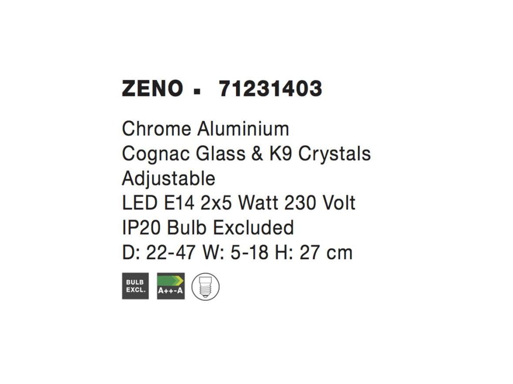 Nástenné svietidlo ZENO, dymové sklo a K9 krištáľy nastaviteľné E14 2x5 W