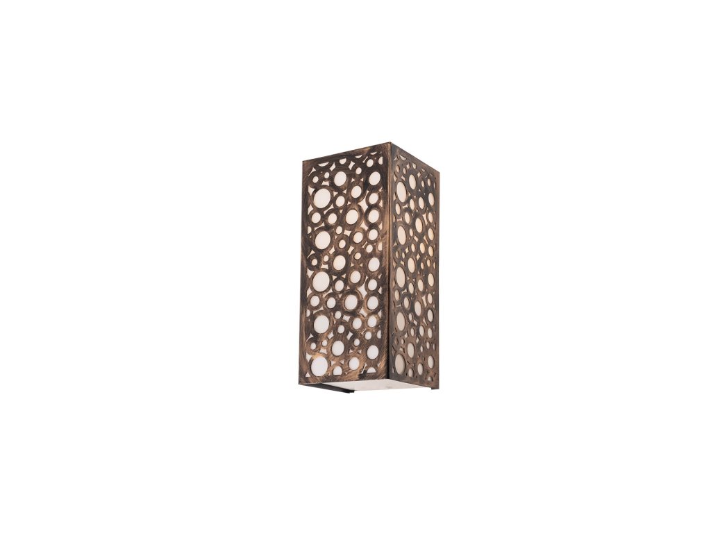 Nástenné vonkajšie svietidlo, telo z opálového polykarbonátu, plechová predná strana v matnej čiernej farbe so zlatou patinou. Žiarovka E27 nie je súčasťou balenia.