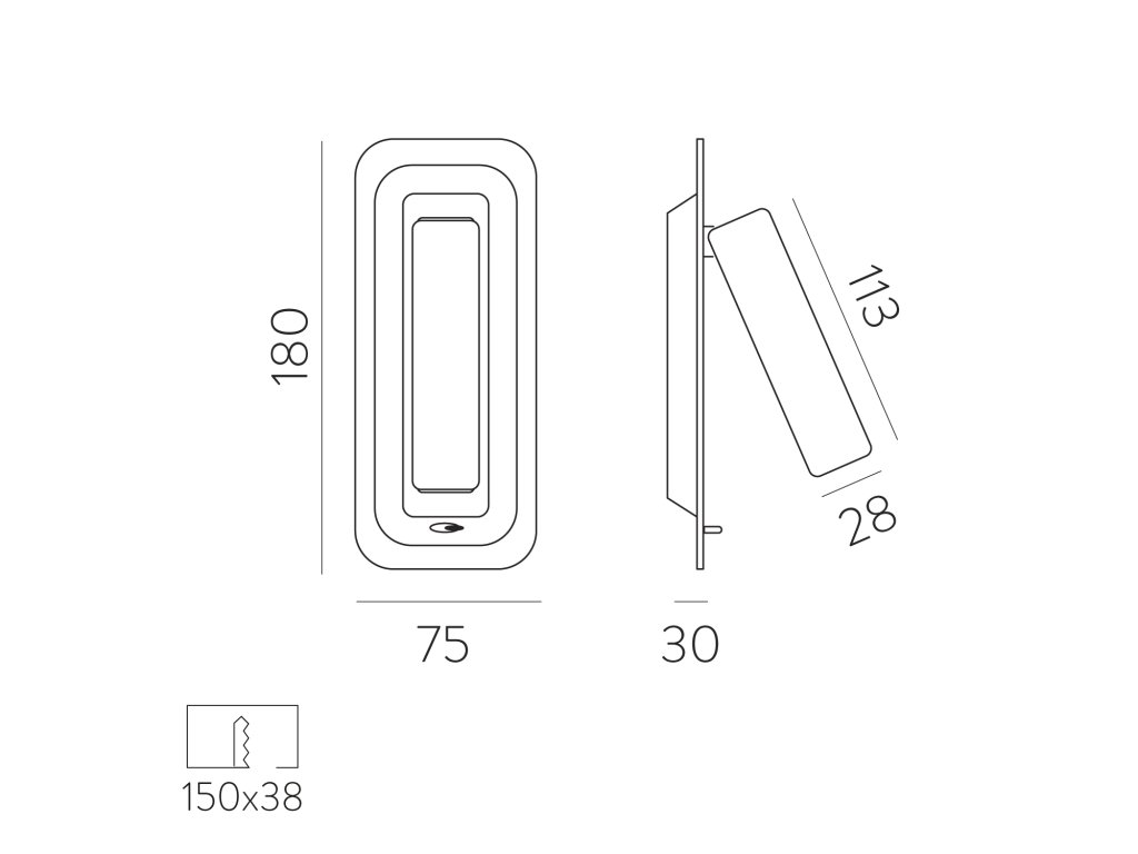 - montážny otvor v.150mm, š.38mm, hĺbka 36mm, viď montážny návod
